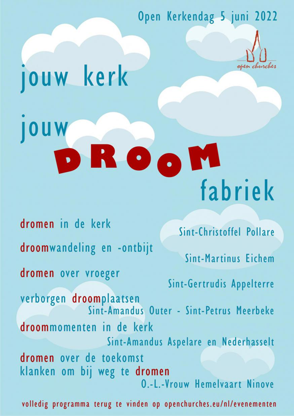 Niet de kerkfabriek staat centraal maar de kerk als droomfabriek. Dat thema vind je terug in een aantal kerken van Ninove en de deelgemeenten. Het is ook een mooie opportuniteit om het Ninoofs erfgoed in de kijker te zetten.