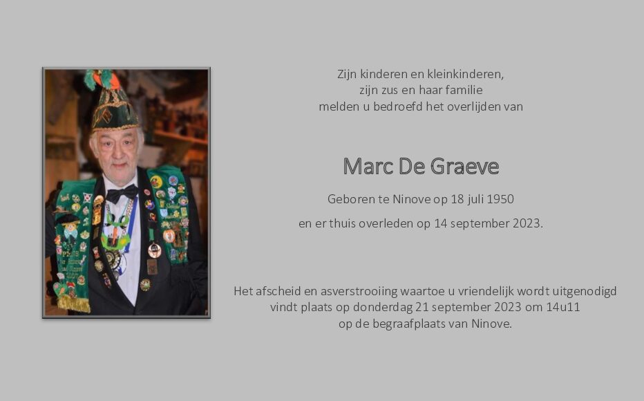 NINOVE – Wij vernemen het overlijden op 73-jarige leeftijd van Marc De Graeve.