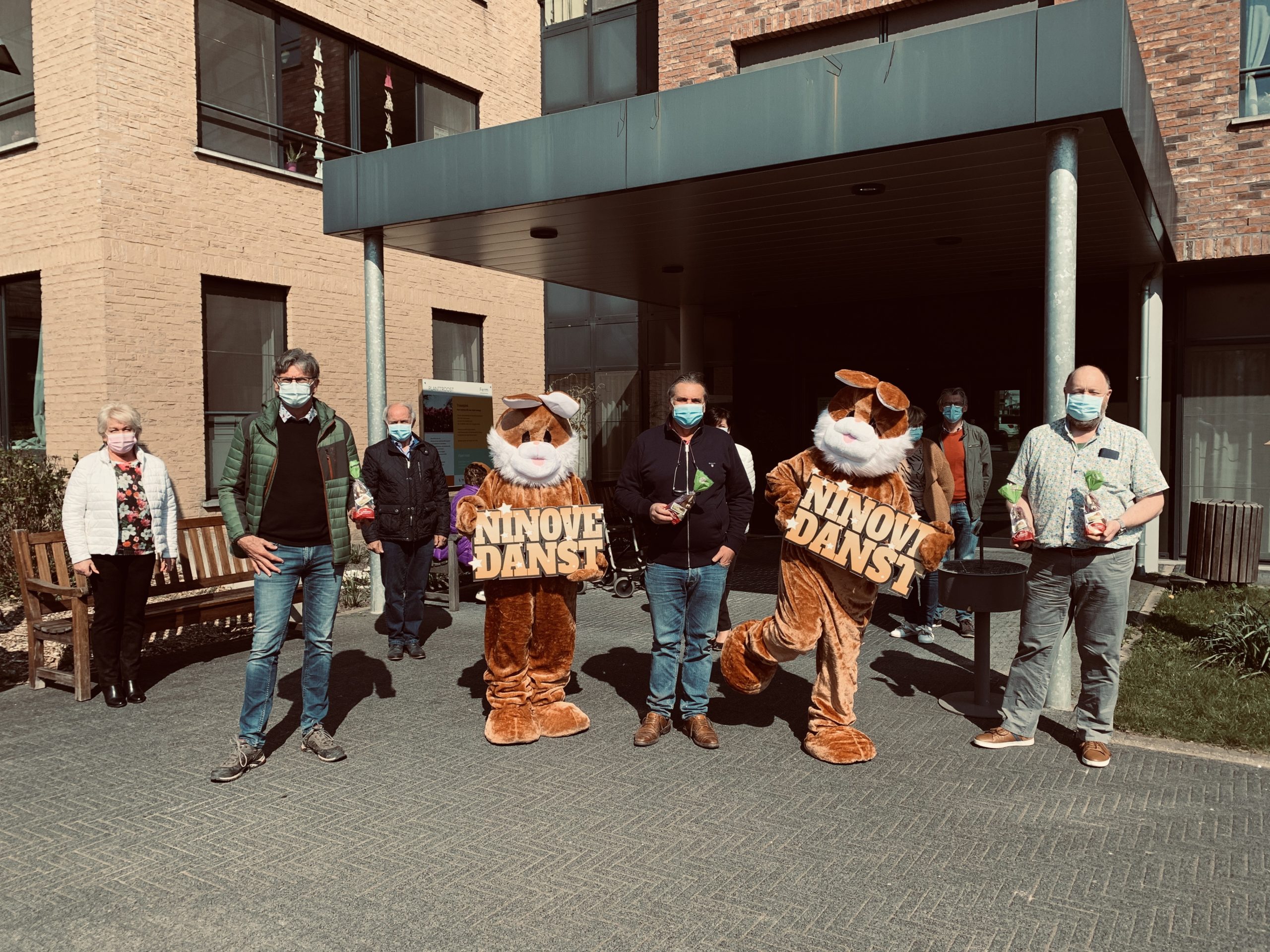 NINOVE – De werkgroep Ninove Danst engageerde twee paashazen om vrijdag 02 april in Klateringen 360 zakjes te bedelen met chocolade… paashaasjes.