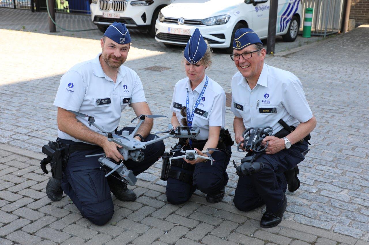 NINOVE – De lokale politie en burgemeester Guy D’haeseleer stelden vrijdag 11 juli de nieuwste aanwinsten van het korps voor: 3 drones of vliegende camera’s.