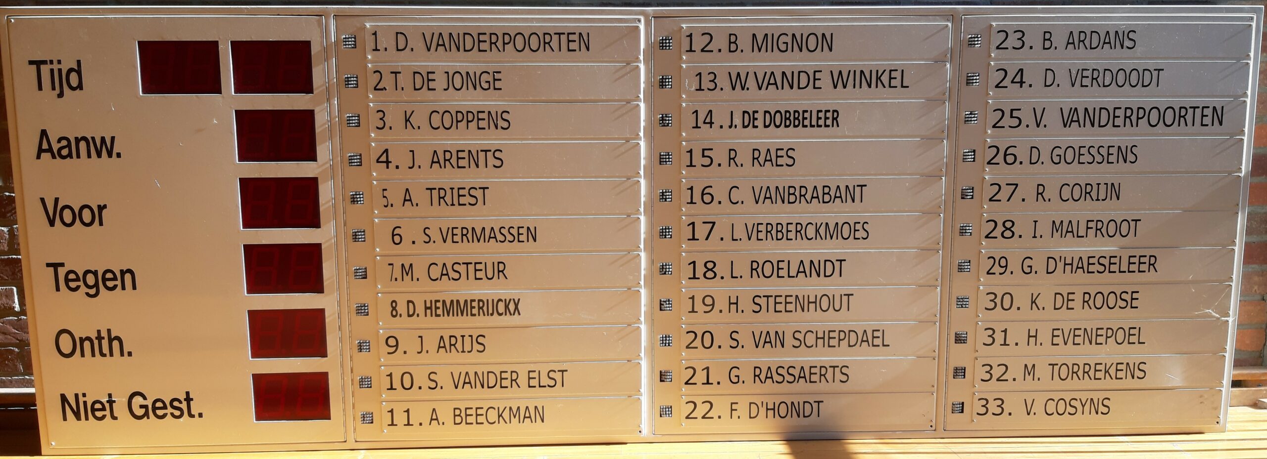 De 33 raadsleden vergaderen nog in de huidige samenstelling. Normaal gesproken treden de nieuwe bestuursmeerderheid en de nieuw verkozen 35 raadsleden begin december aan.