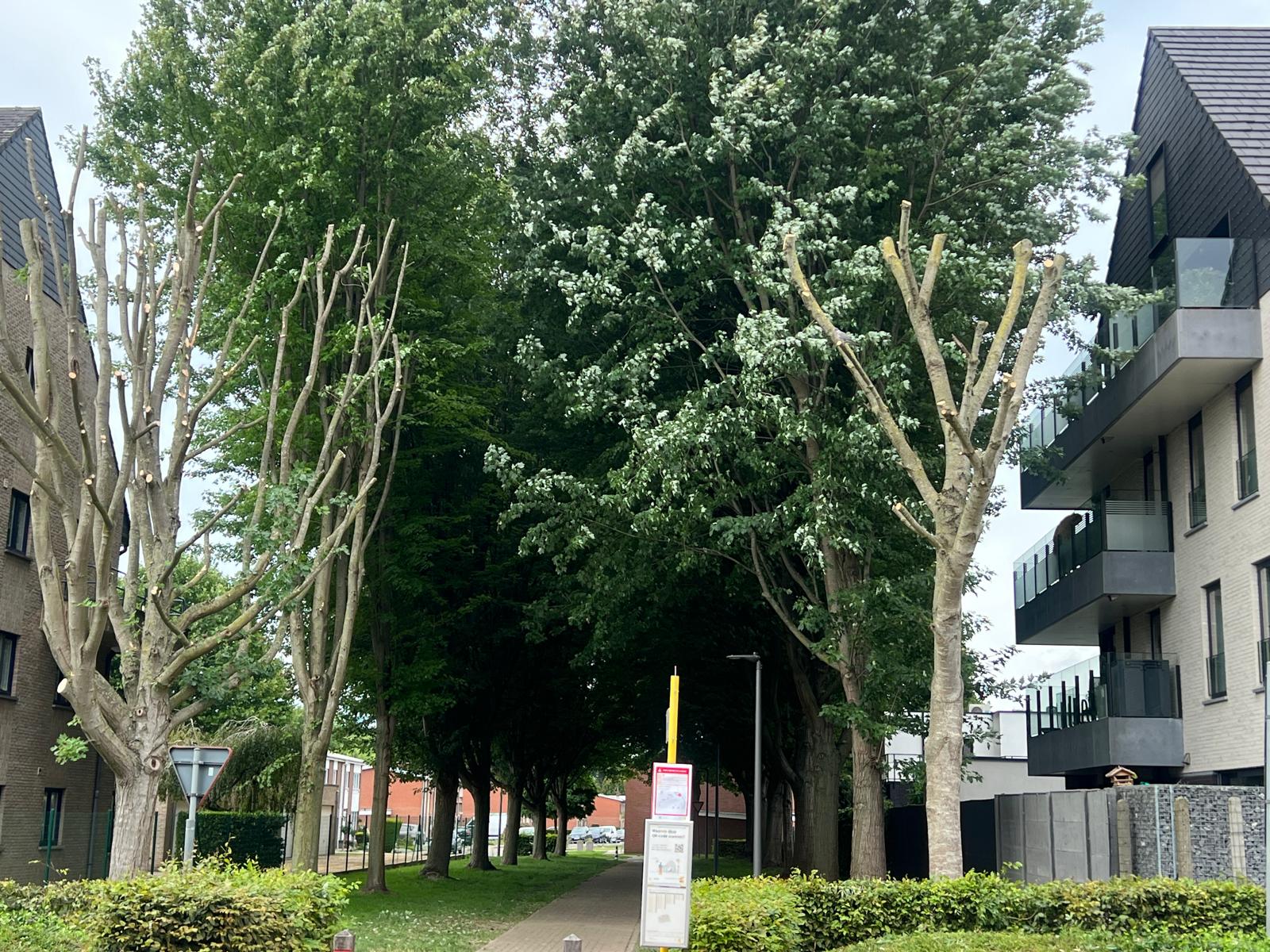 Hij verwijst naar een advies en een expertise, die door de stad Ninove in 2020 was besteld in verband met die bomen. “Daarin staat duidelijk vermeld: ter hoogte van de appartementsgebouwen (enkel geldig voor boomnummers 1, 2, 3 én 14, 15, 16) kan de kroonaanzet gevormd worden tussen 8-10 meter hoogte. In 2020 is dat advies niet gevolgd. Daarom moeten ze nu zo drastisch worden ingekort. Eigenlijk is het dus de toenmalige schepen van Groen (nvdr: Wouter Vande Winkel), die voor dit ‘debacle’ heeft gezorgd.”