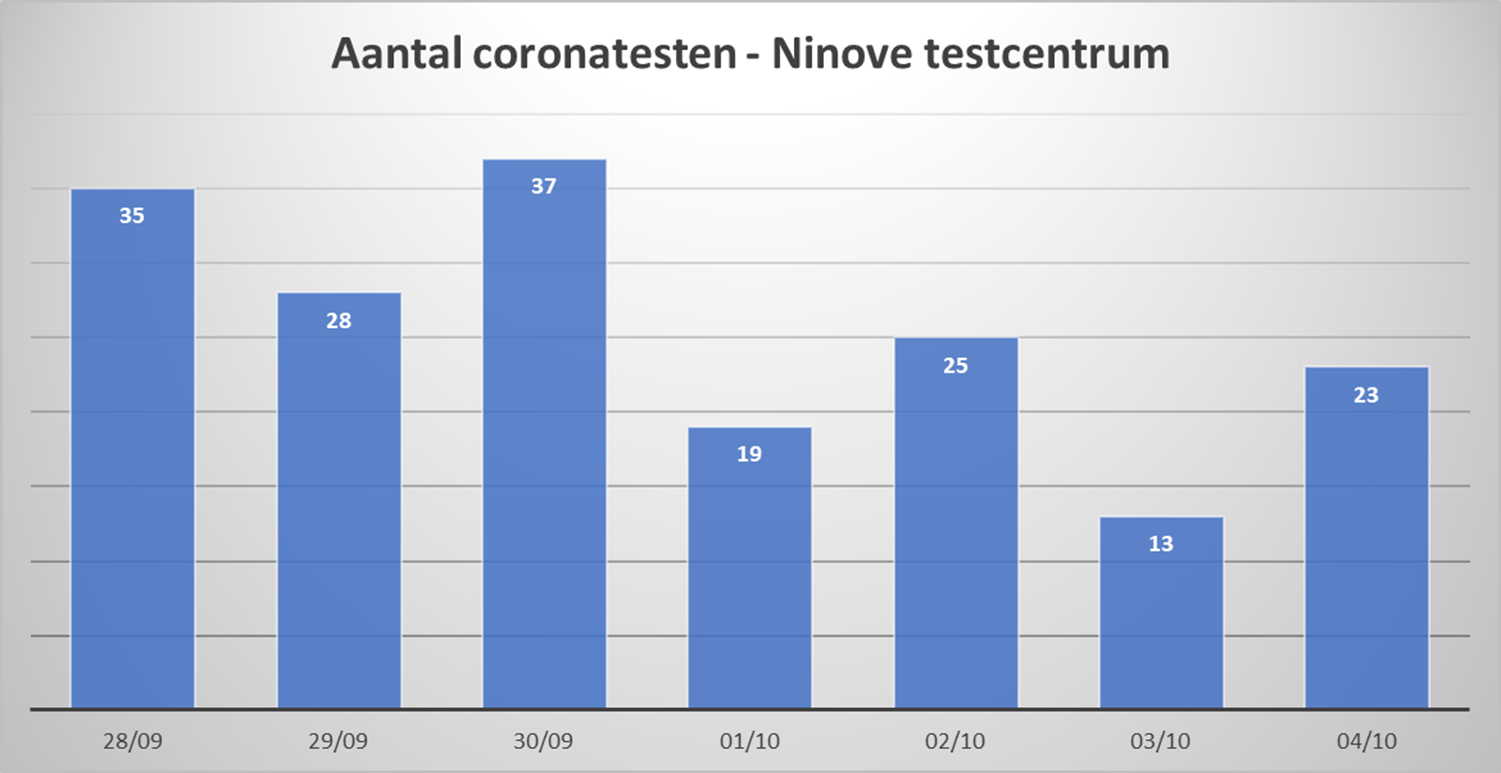 - In het testcentrum van Ninove zijn tot en met 04 oktober 362 mensen getest.