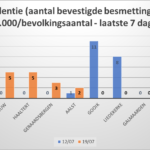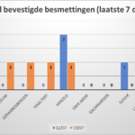 – het aantal bevestigde besmettingen (laatste 7 dagen),