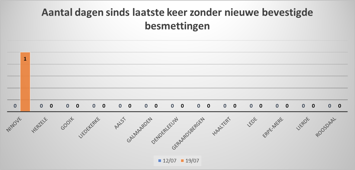 – het aantal dagen sinds er geen nieuwe bevestigde besmettingen zijn,