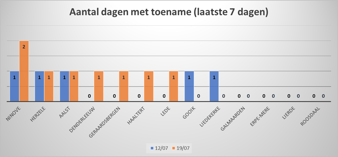– het aantal dagen met een toename (laatste 7 dagen).