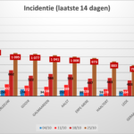 – incidentie (aantal bevestigde besmettingen x 100.000/bevolkingsaantal).