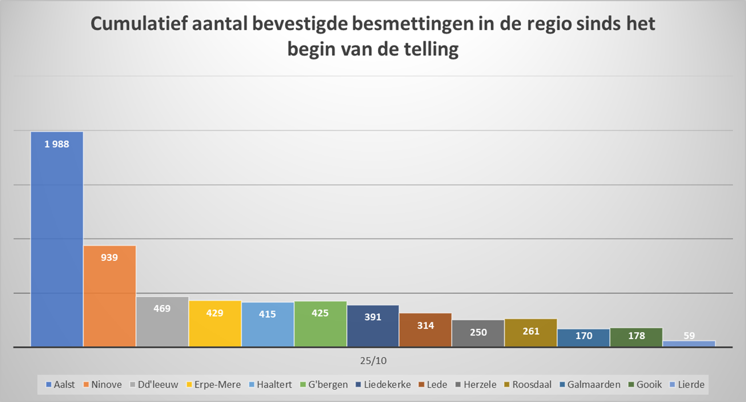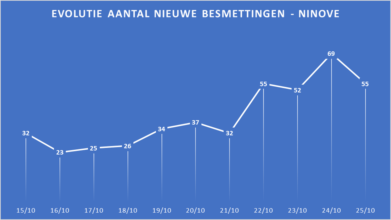 • In totaal zijn in Ninove 939 besmettingen genoteerd sinds het begin van de telling.
