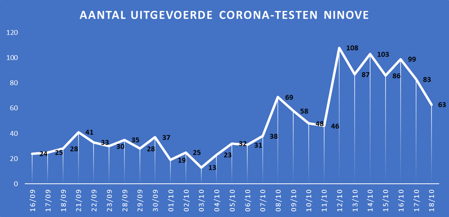 • In het testcentrum van Ninove zijn tot en met 18 oktober 1.304 mensen getest.