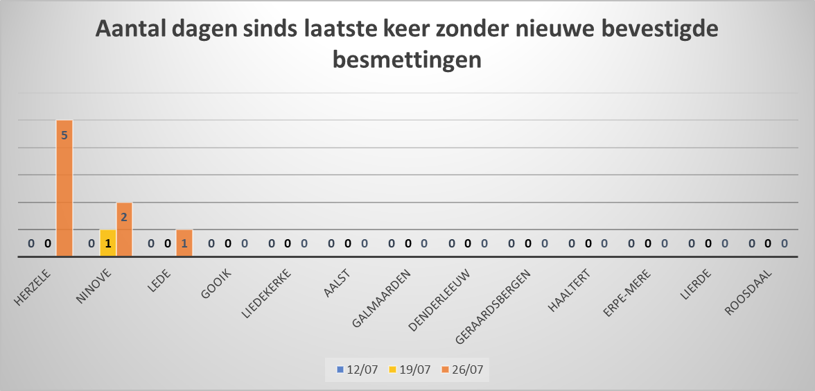 - het aantal dagen sinds er geen nieuwe bevestigde besmettingen zijn,