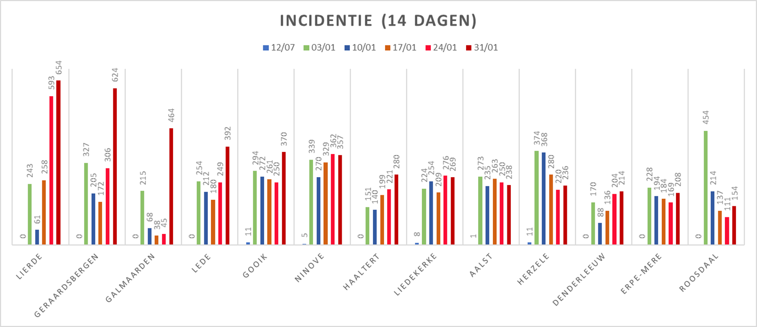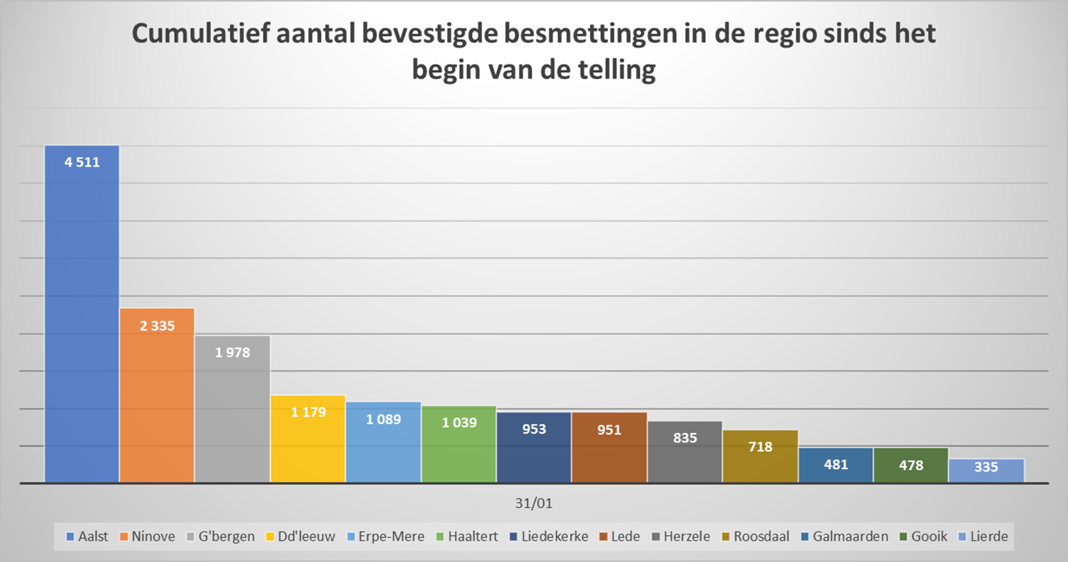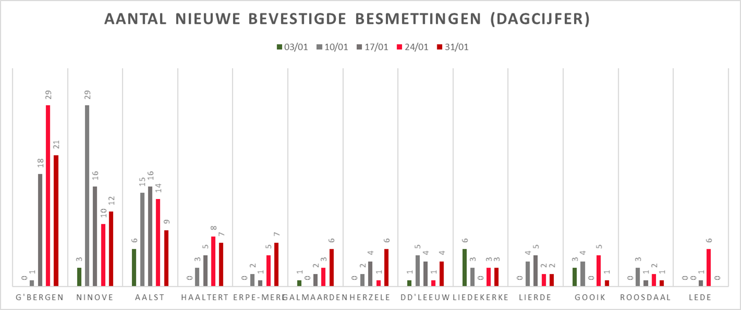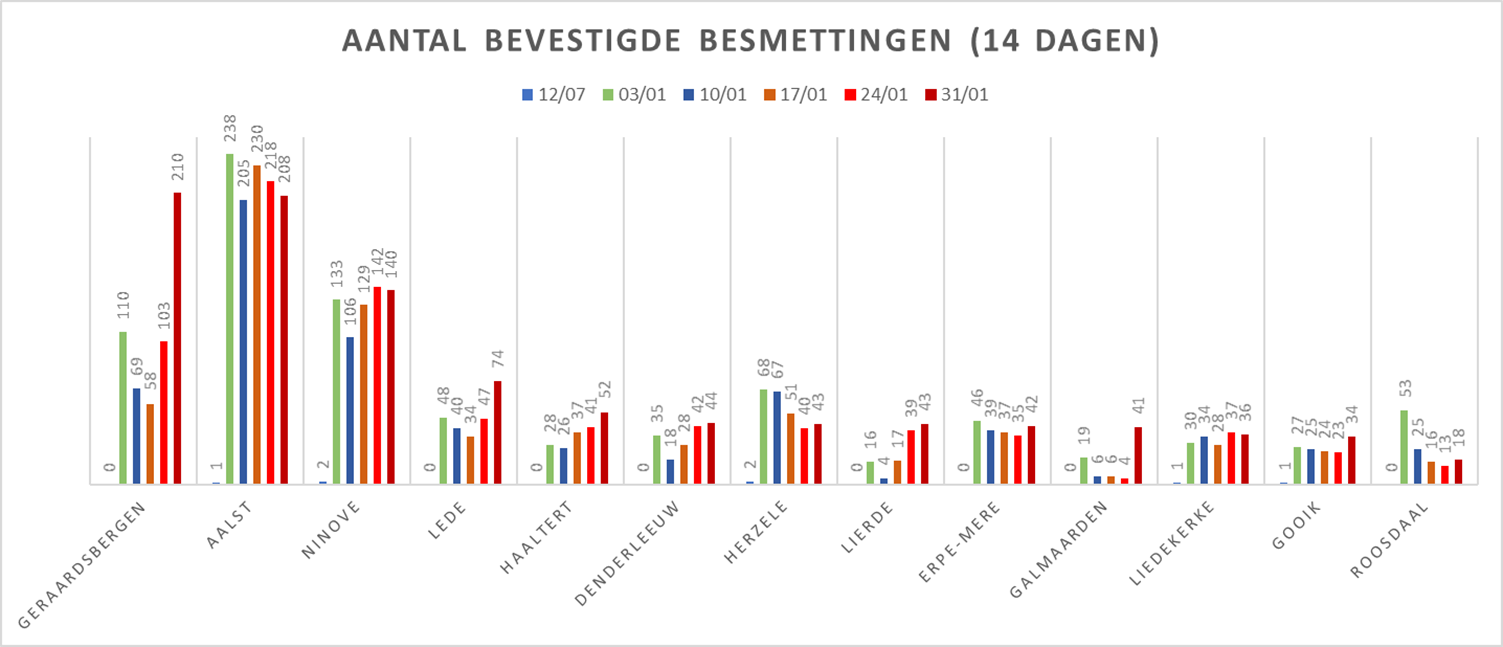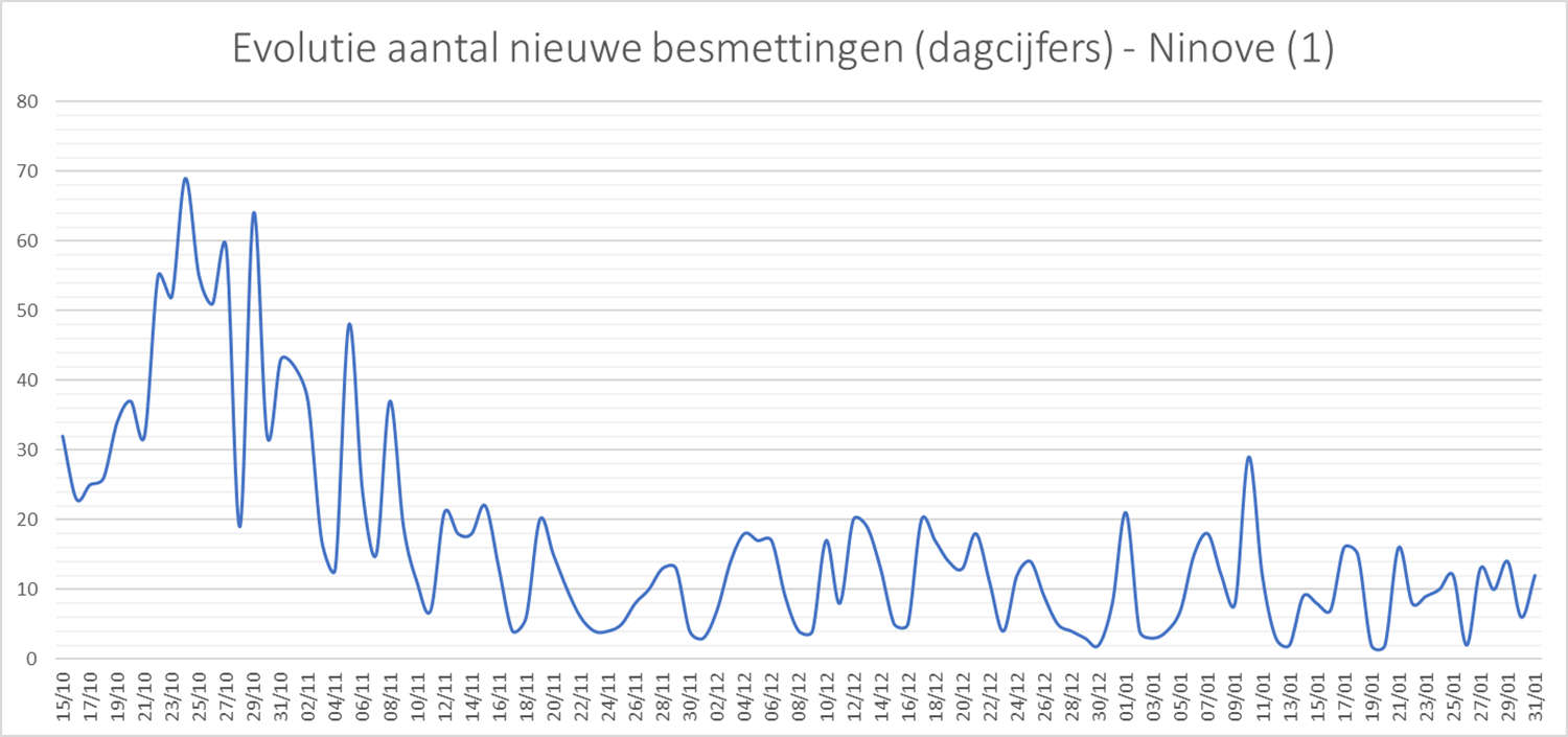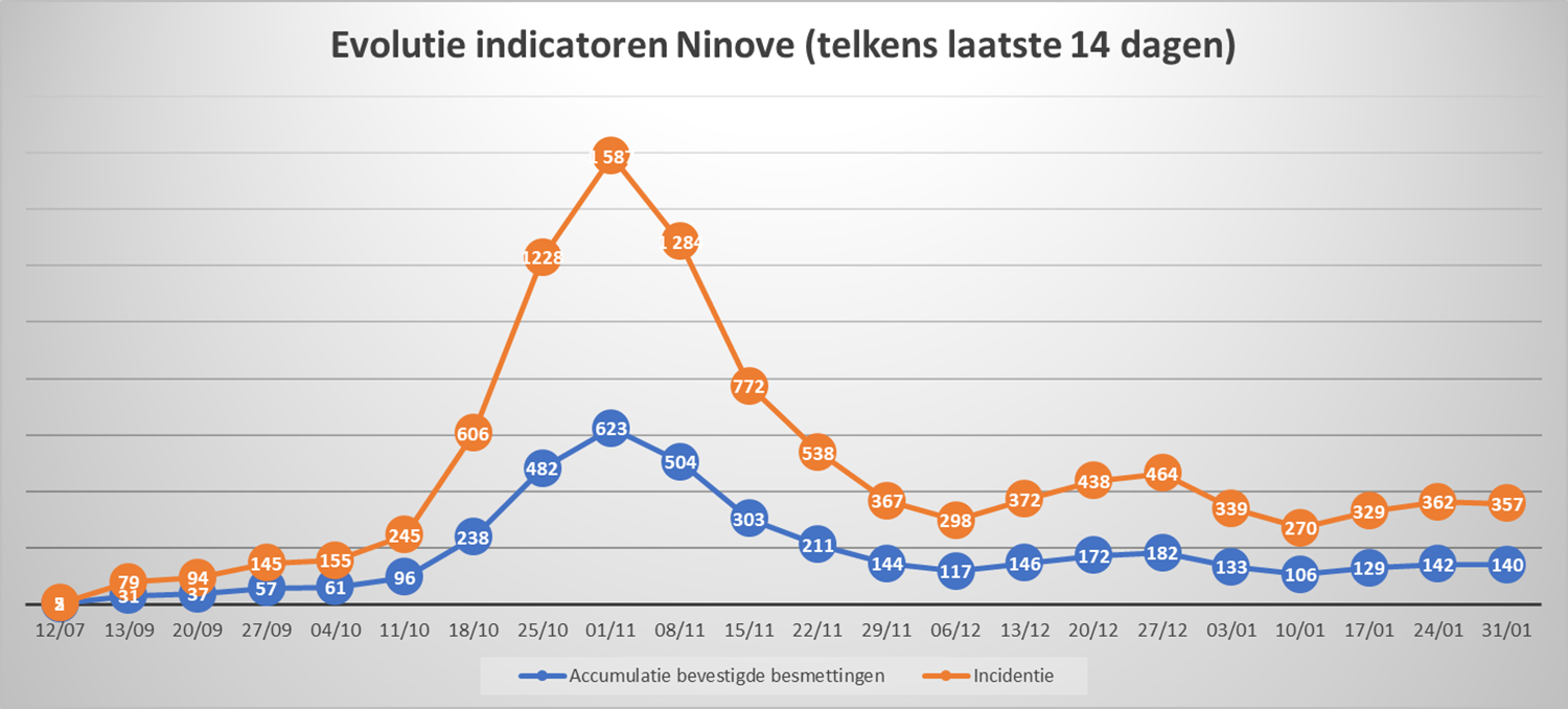 NINOVE – Volgens Sciensano zijn de afgelopen 14 dagen 140 bevestigde besmettingen genoteerd in Ninove. We brengen deze en andere cijfers van de omliggende steden en gemeenten elke week in kaart.