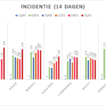 | Aantal bevestigde besmettingen (laatste 14 dagen) | ||||||||||