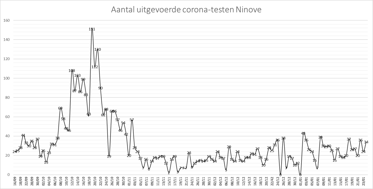 - In het testcentrum van Ninove zijn tot en met 24 januari 4.001 mensen getest.