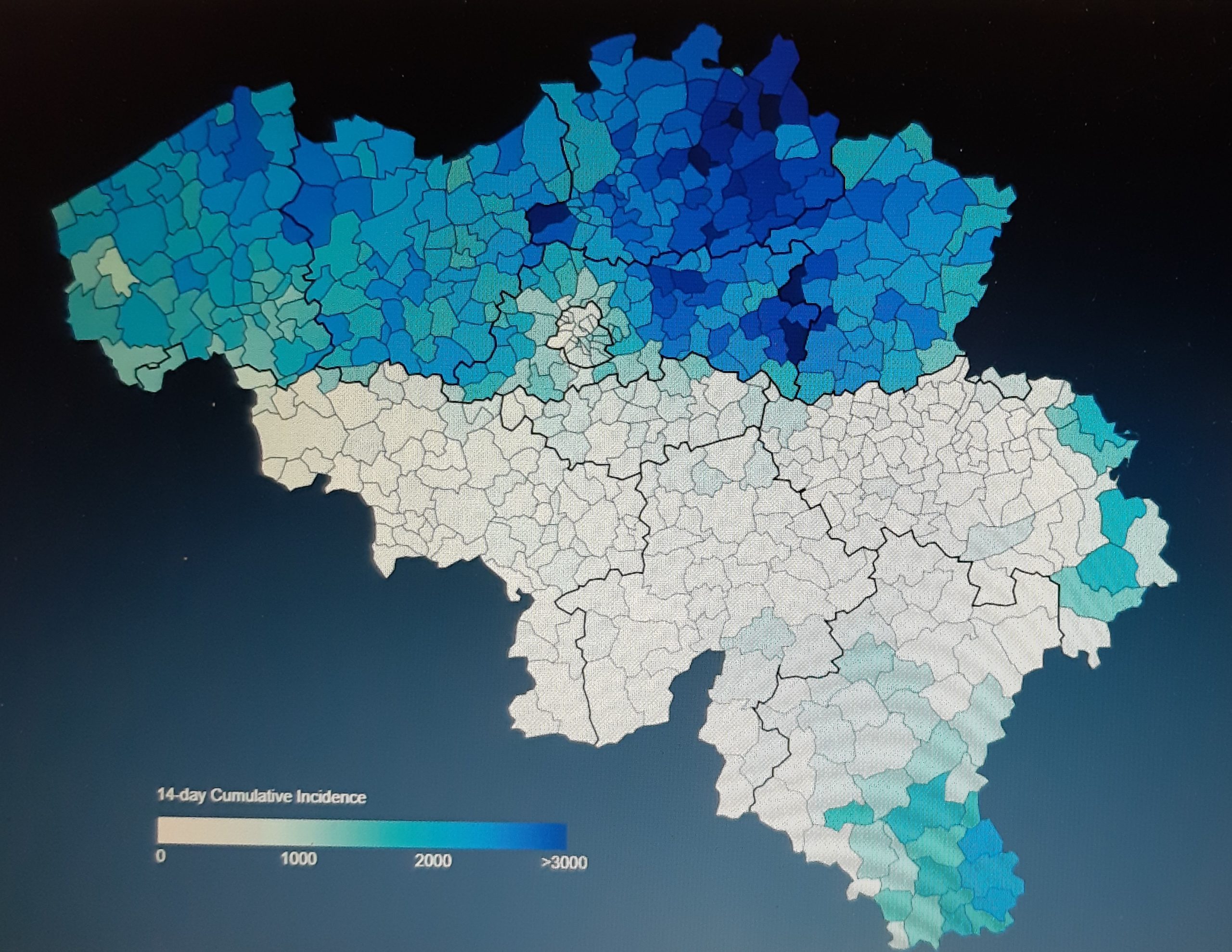 Hierbij hanteren we de telling en de benadering van Sciensano, dat maar 2 keer per week nieuwe besmettingsaantallen publiceert.