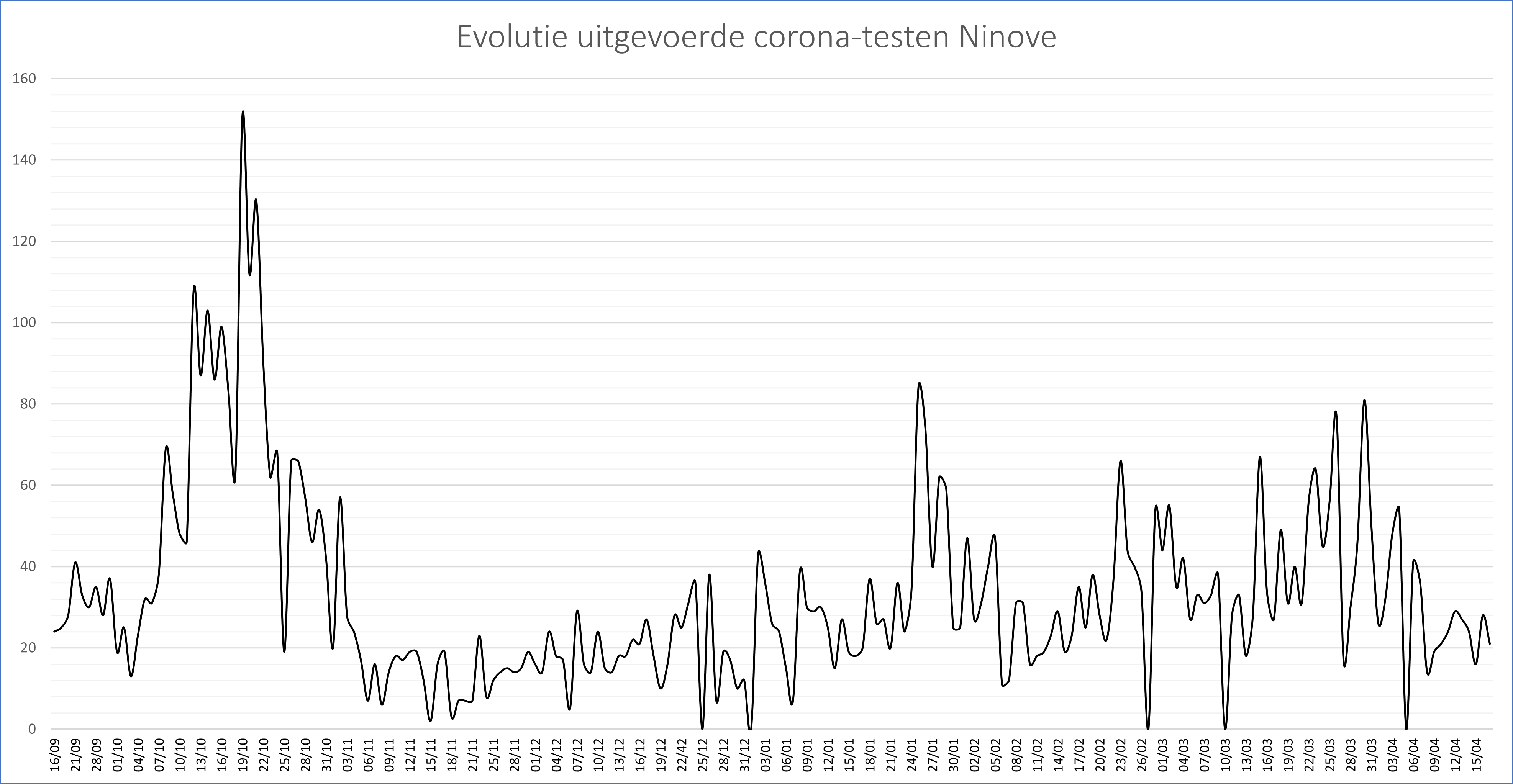 - Over het testcentrum van Ninove ontvingen we geen nieuwe cijfers.