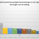 Hieronder een tabel met het aantal bevestigde besmettingen, telkens over een periode van 14 dagen (12 juli 2020 als referentie). Deze en de andere gegevens zetten we in grafieken (bijlagen).