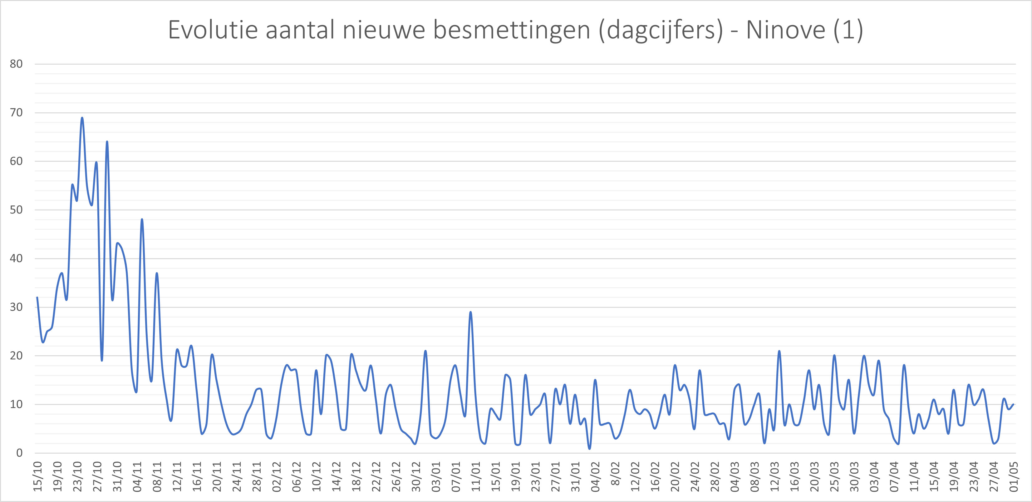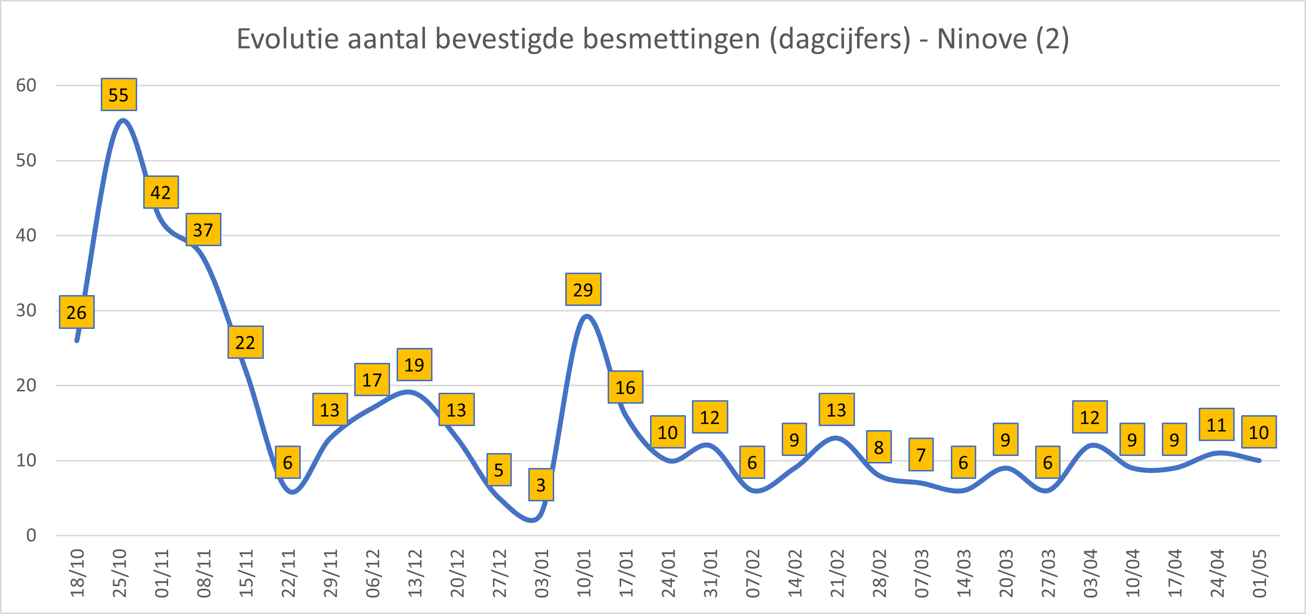 - In totaal zijn in Ninove 3.137 besmettingen genoteerd sinds het begin van de telling.
