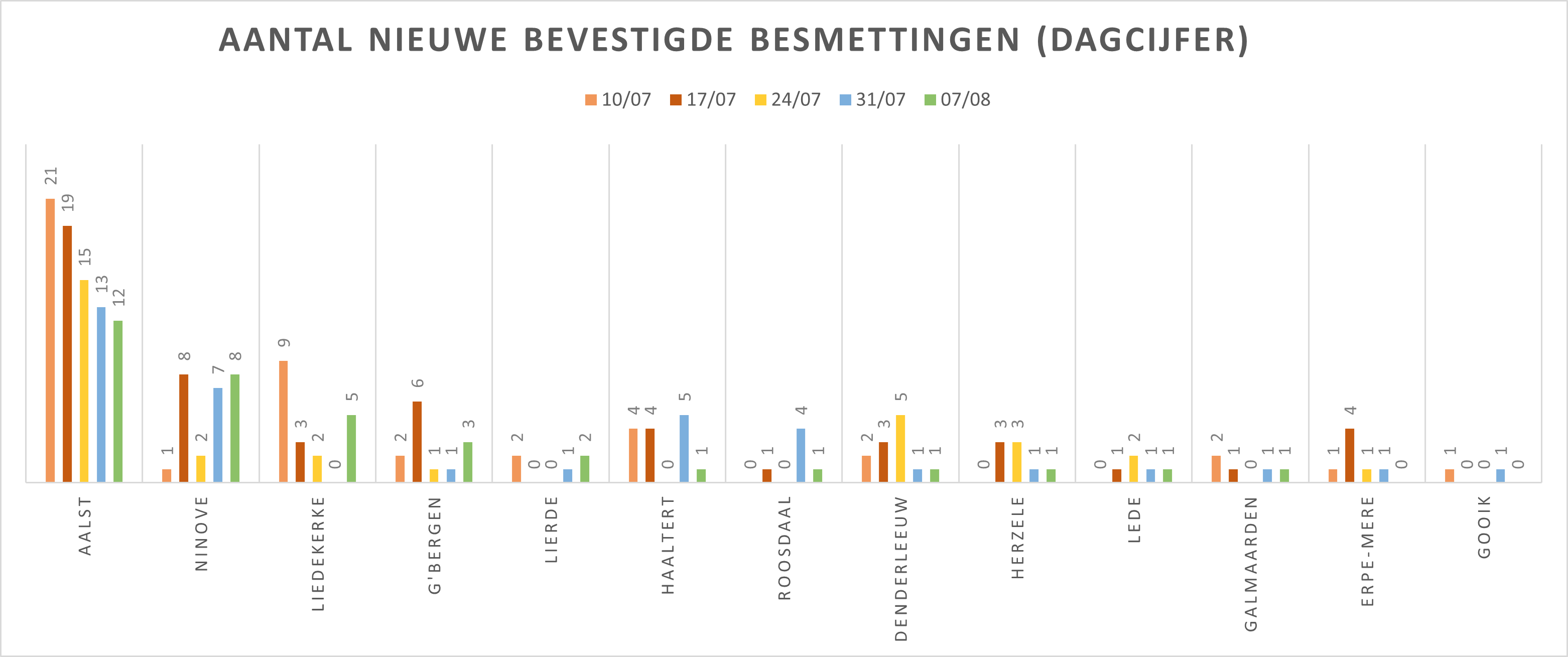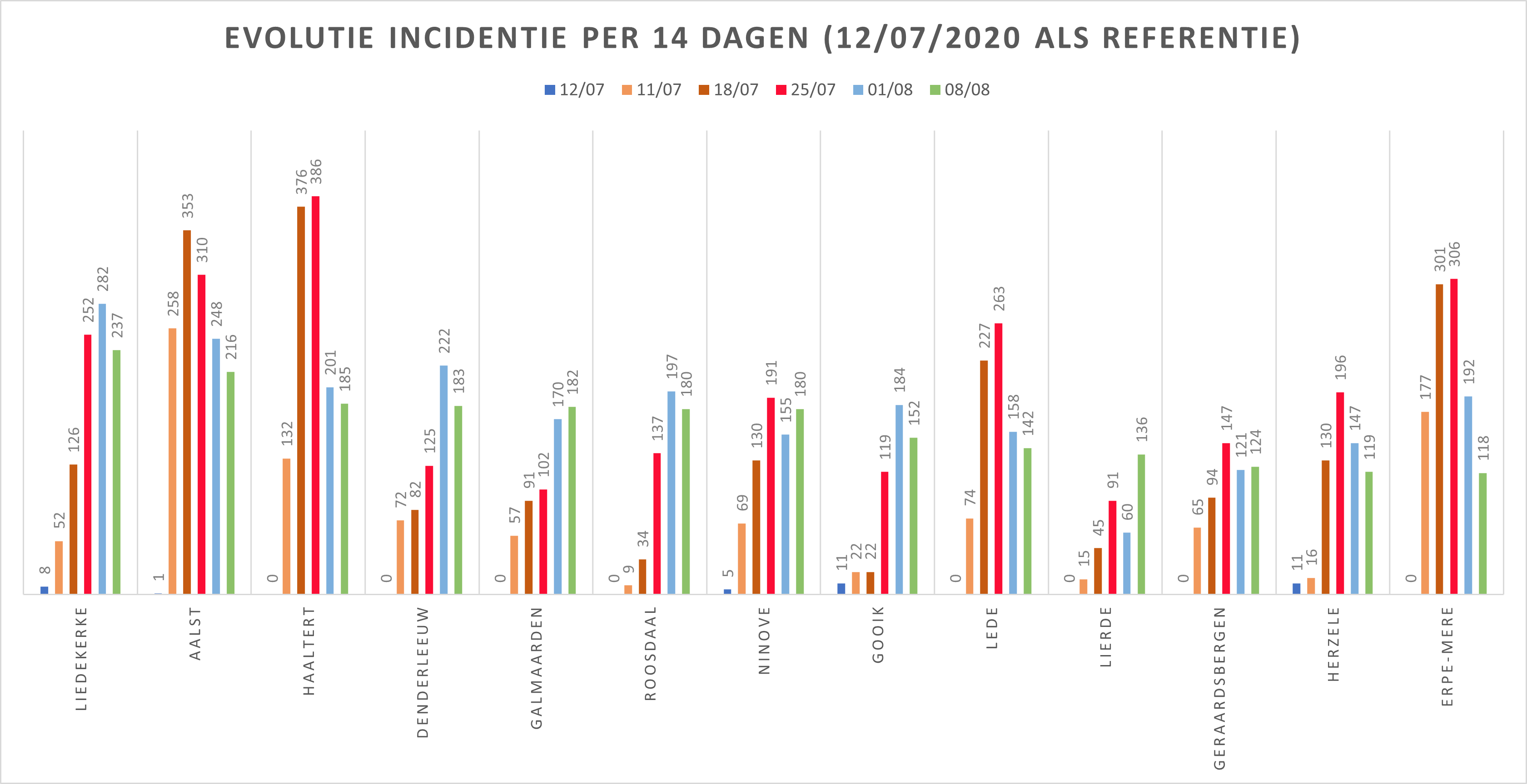| Gemeente/Stad | 12/07/2020 | 11/07 | 18/07 | 25/07 | 01/08 | 08/08 |