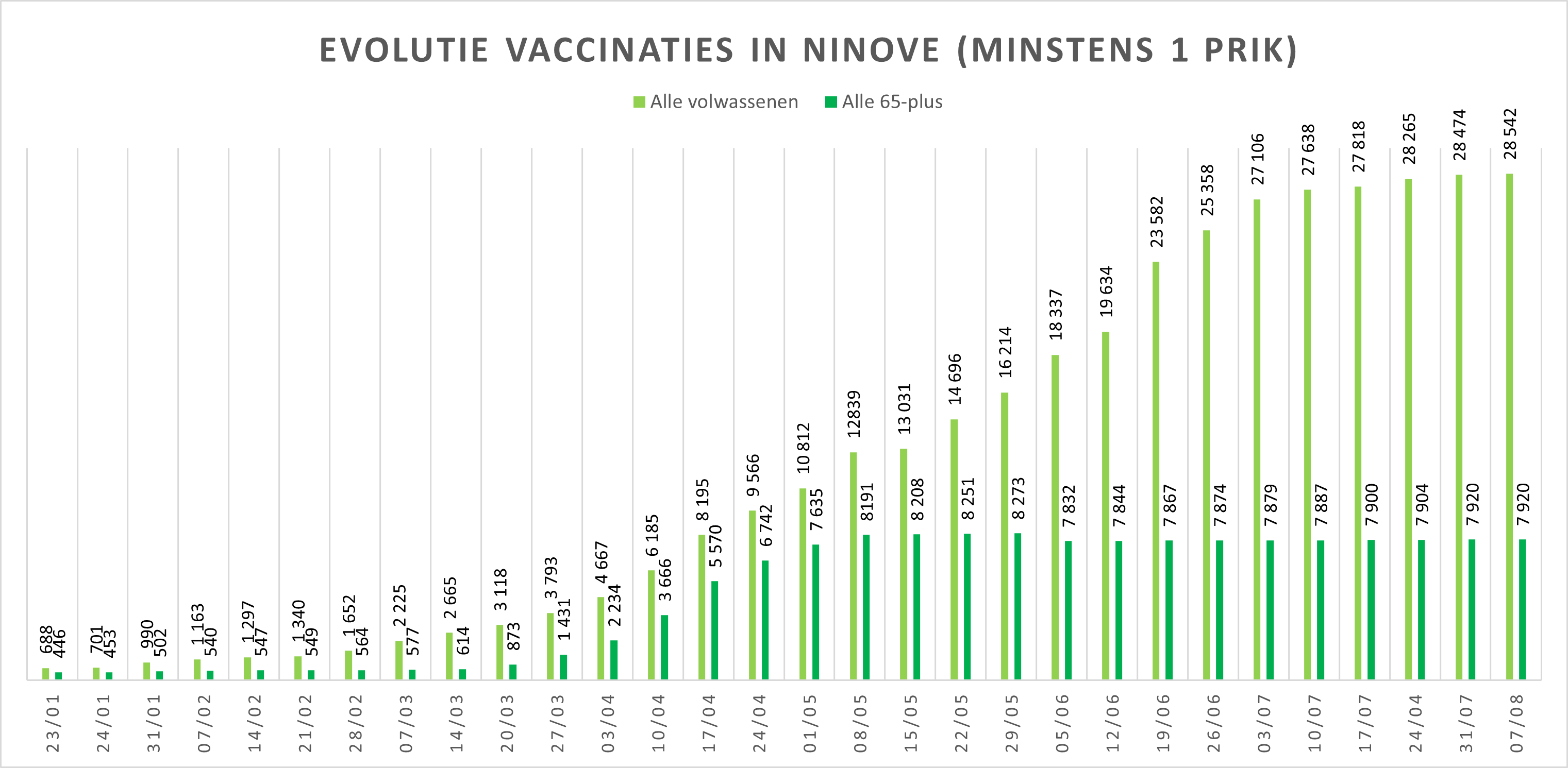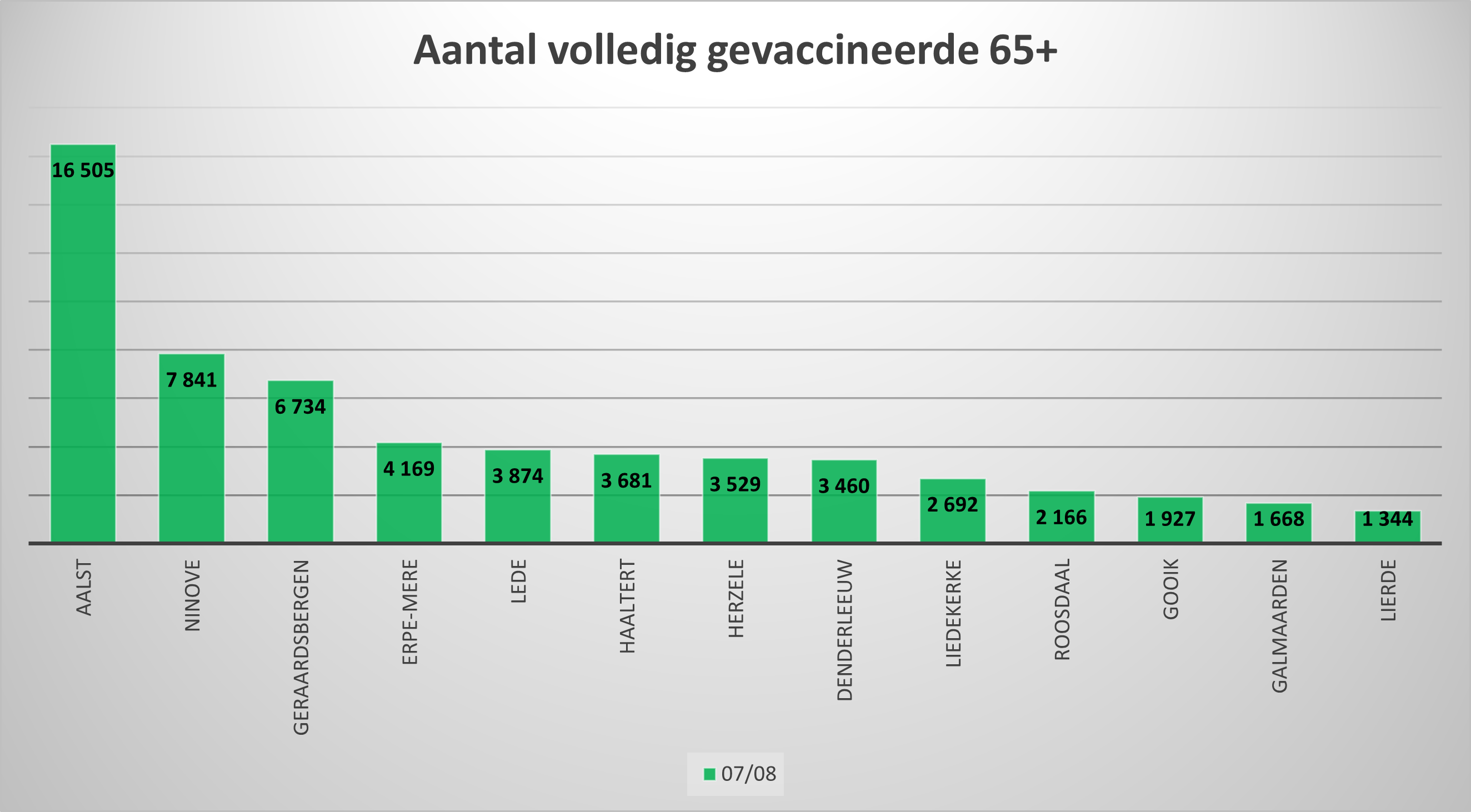 - 7.841 of 95,12 % van de 65-plussers zijn tot 07 augustus eveneens volledig gevaccineerd.