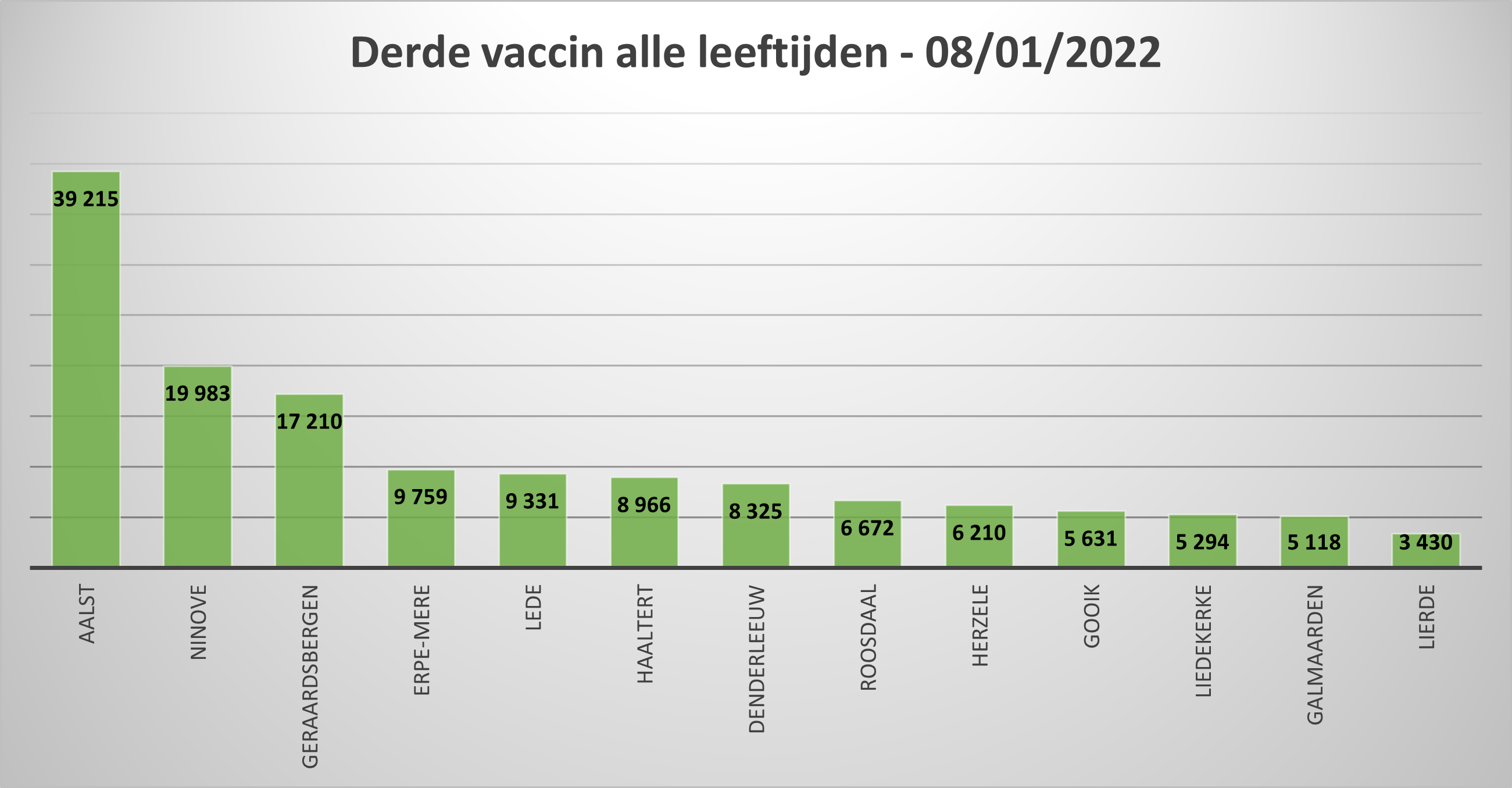 • Momenteel kregen 19.983 (48,22 %) inwoners van alle leeftijden een derde prik.