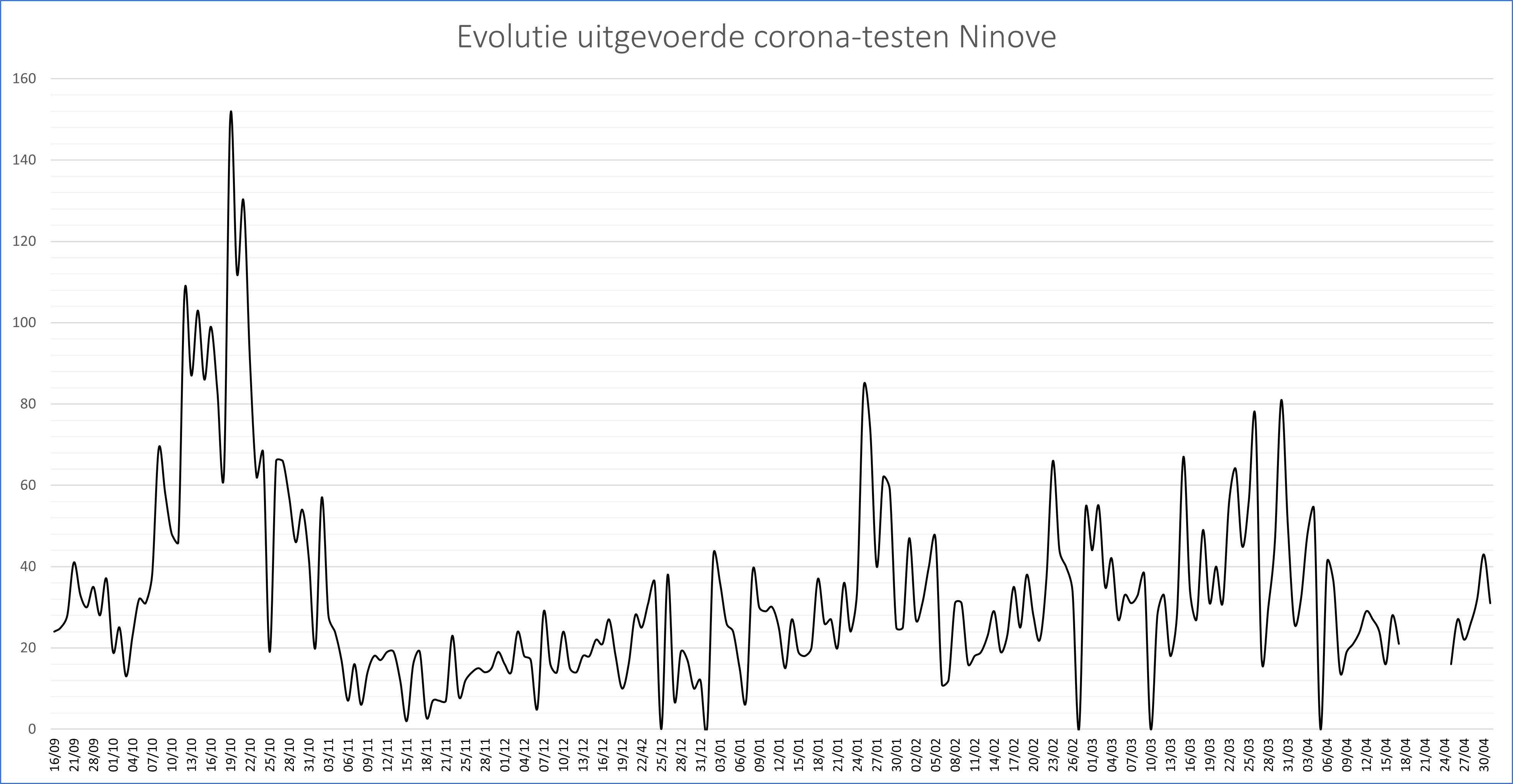 We volgen ook de evolutie op in het testcentrum van Ninove en de stand van het aantal vaccinaties in de regio.