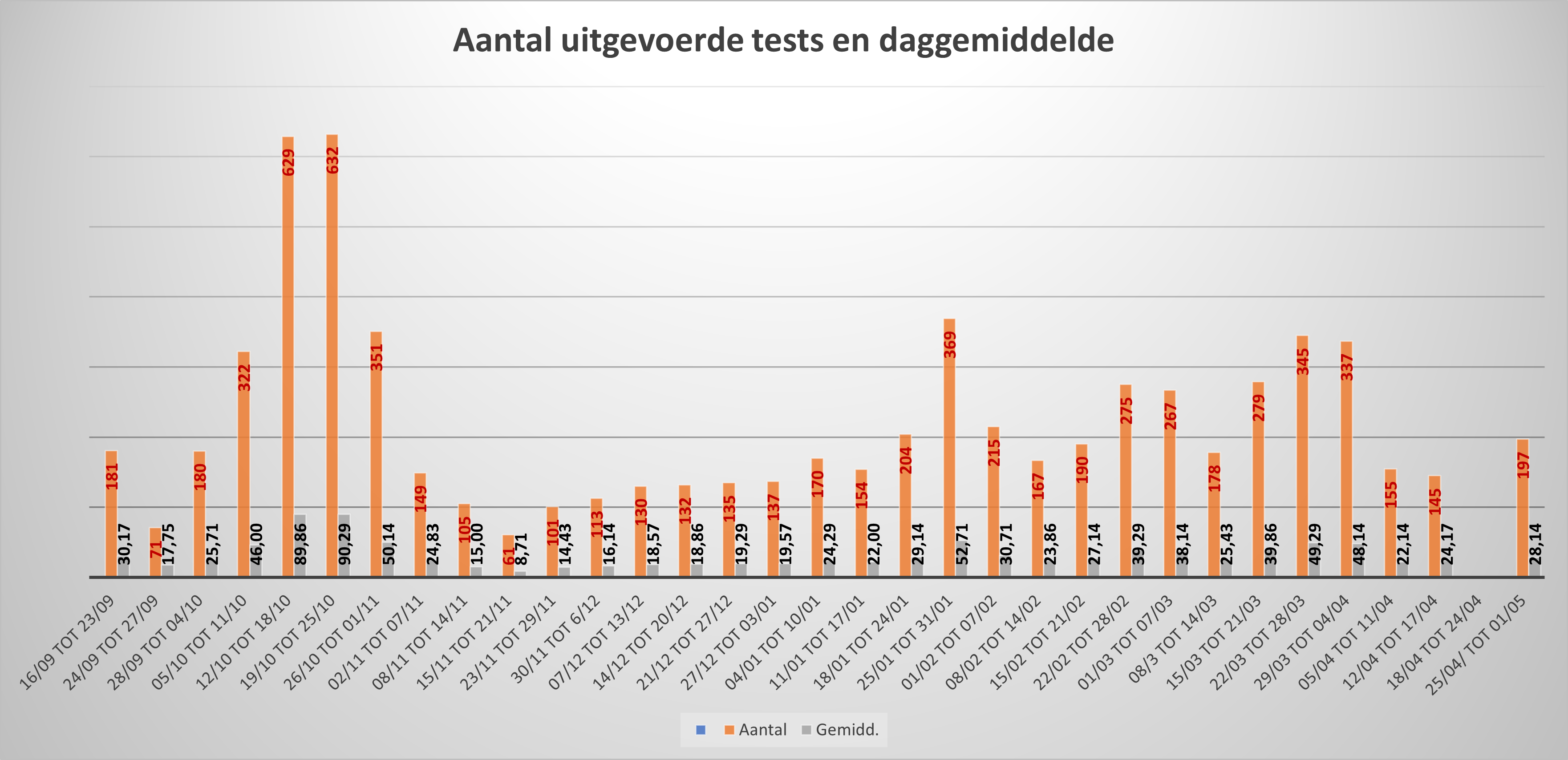 - In het testcentrum zijn in de week van 25 april tot 01 mei 197 personen getest.