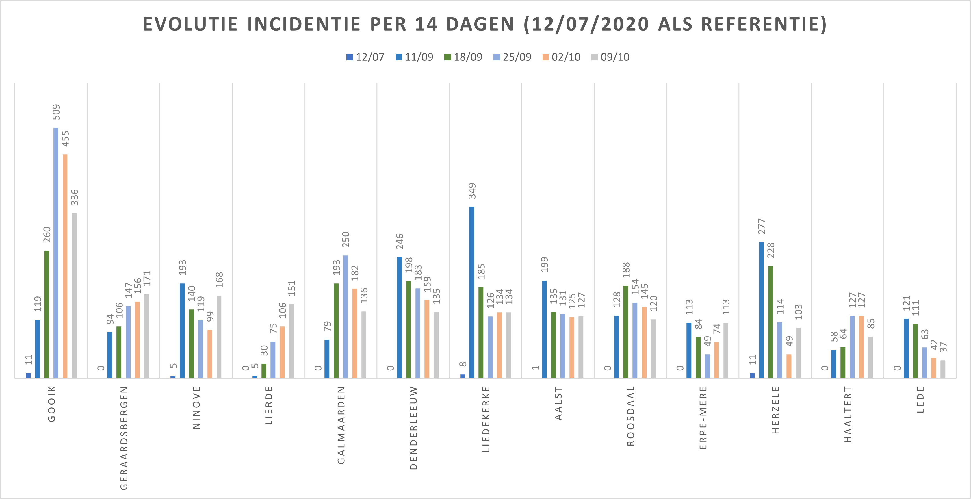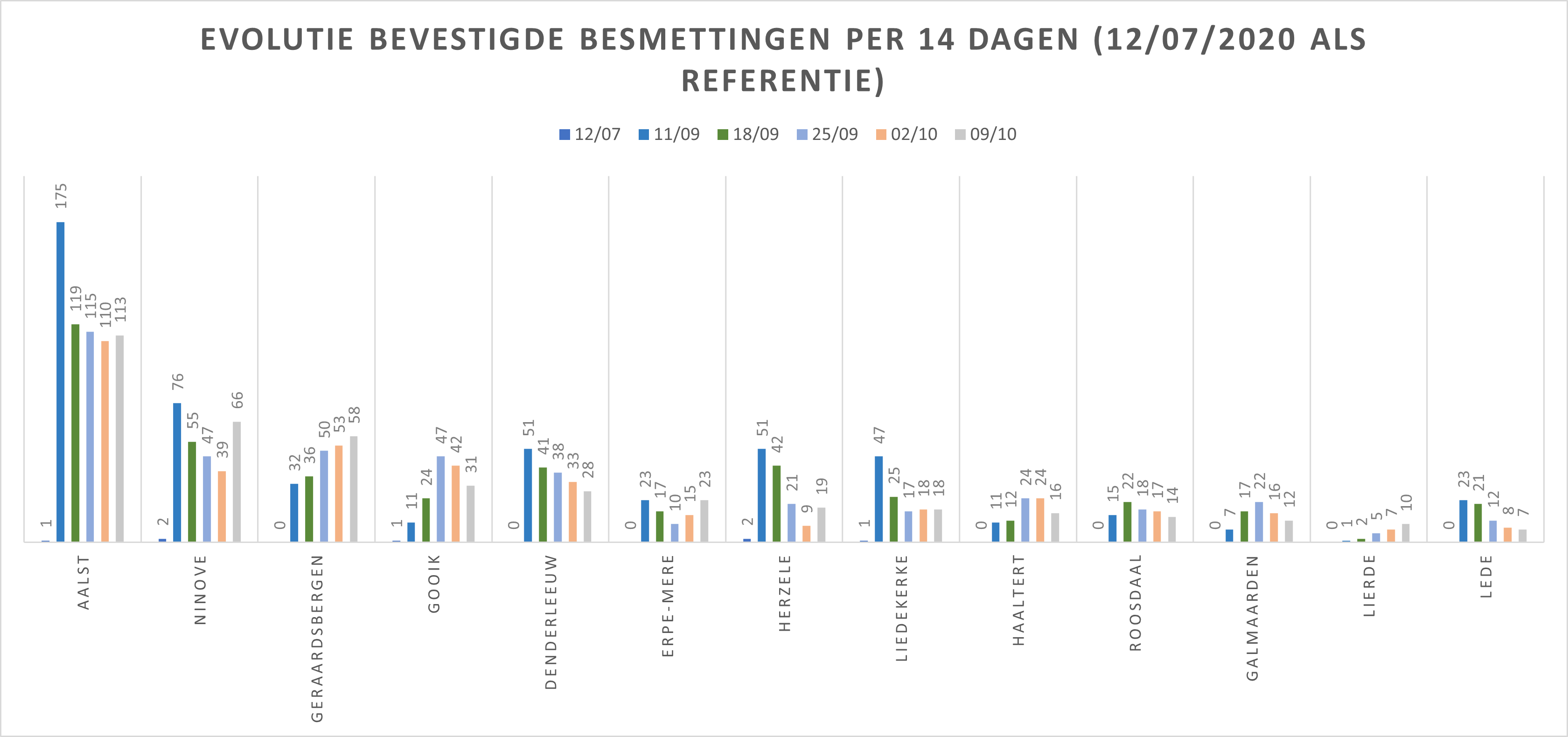 | Gemeente/Stad | 12/07/2020 | 04/09 | 11/09 | 18/09 | 25/09 | 02/10 | 09/10 |