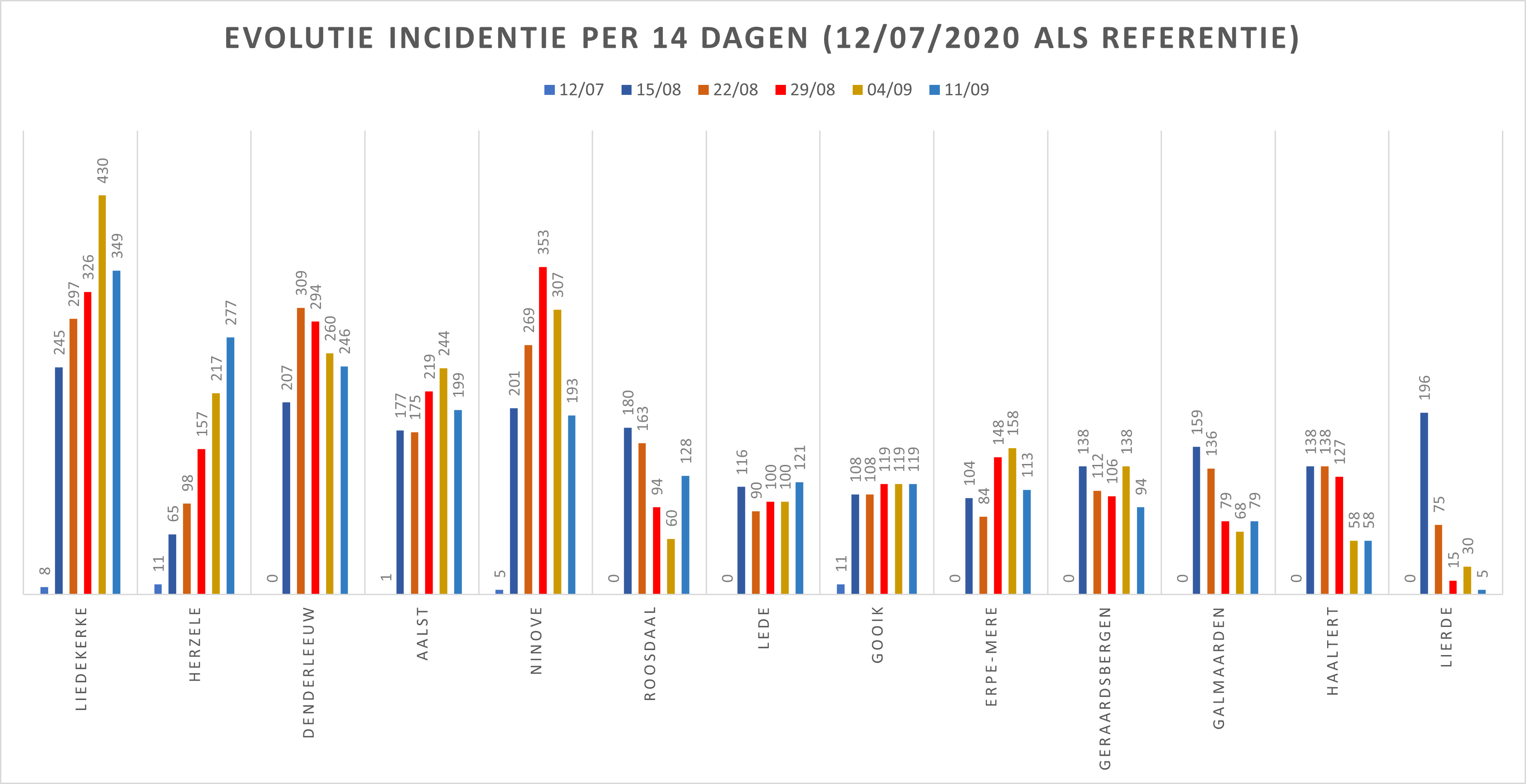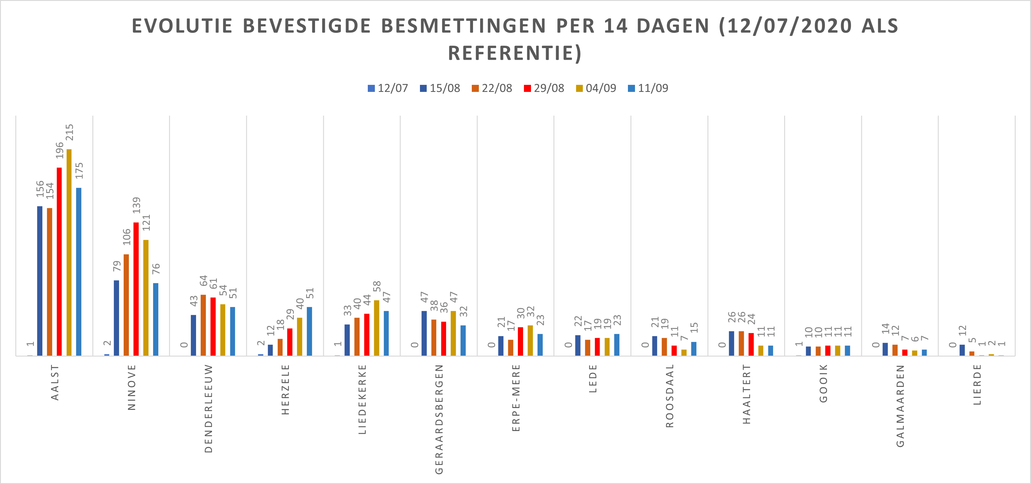 | Gemeente/Stad | 12/07/2020 | 15/08 | 22/08 | 29/08 | 04/09 | 11/09 |