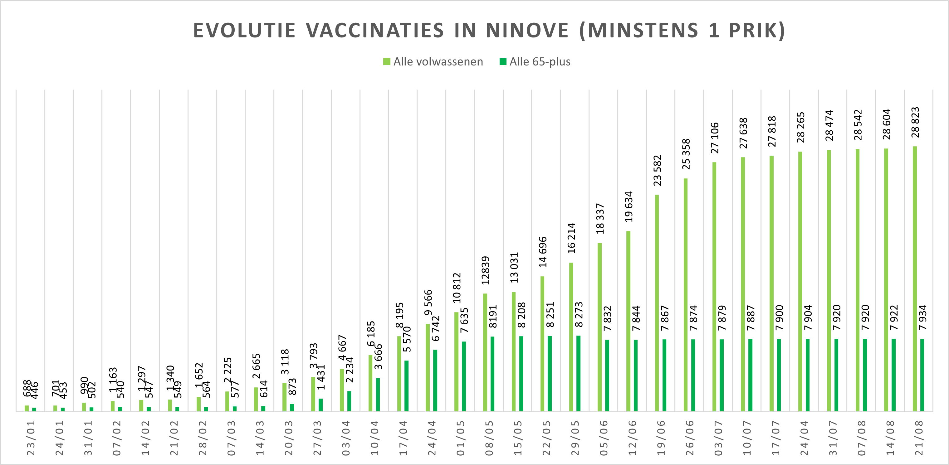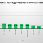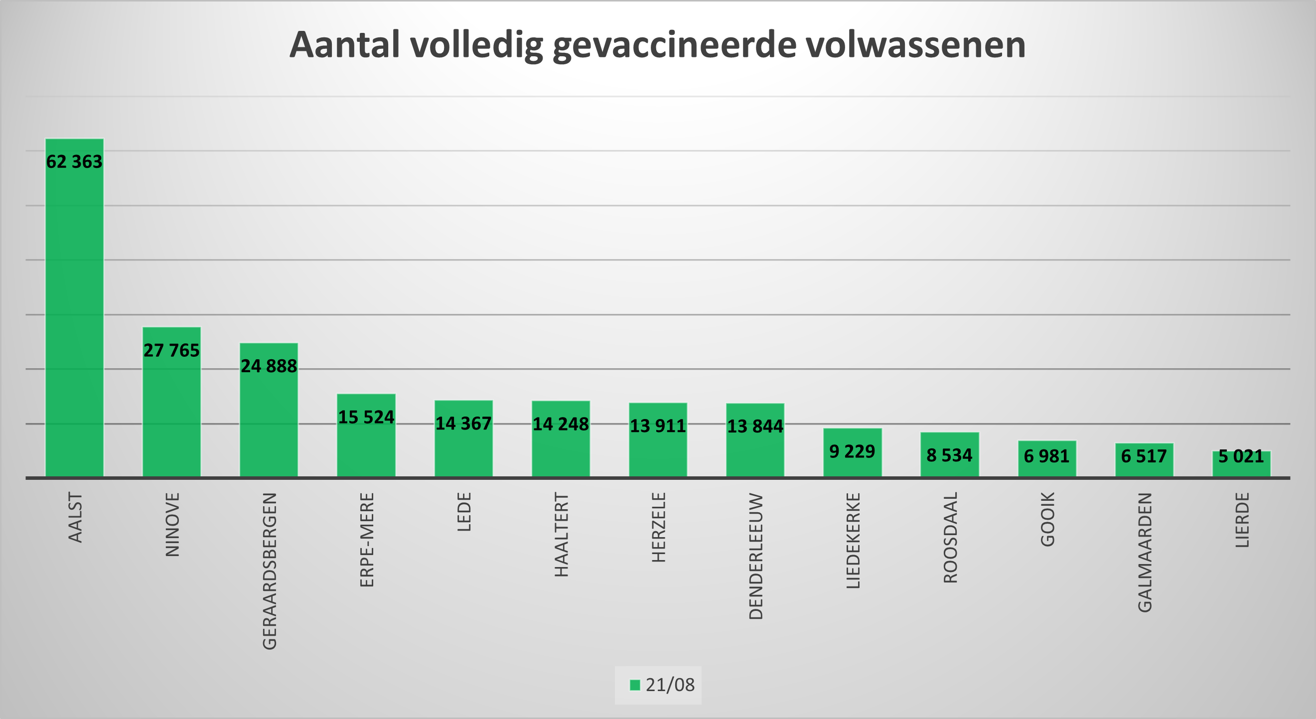 - Tot 21 augustus zijn 27.765 van alle +18-jarigen volledig gevaccineerd.