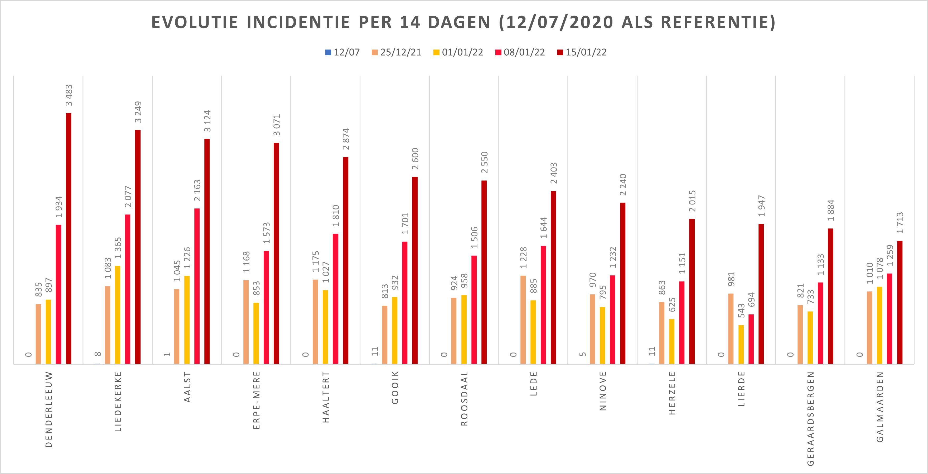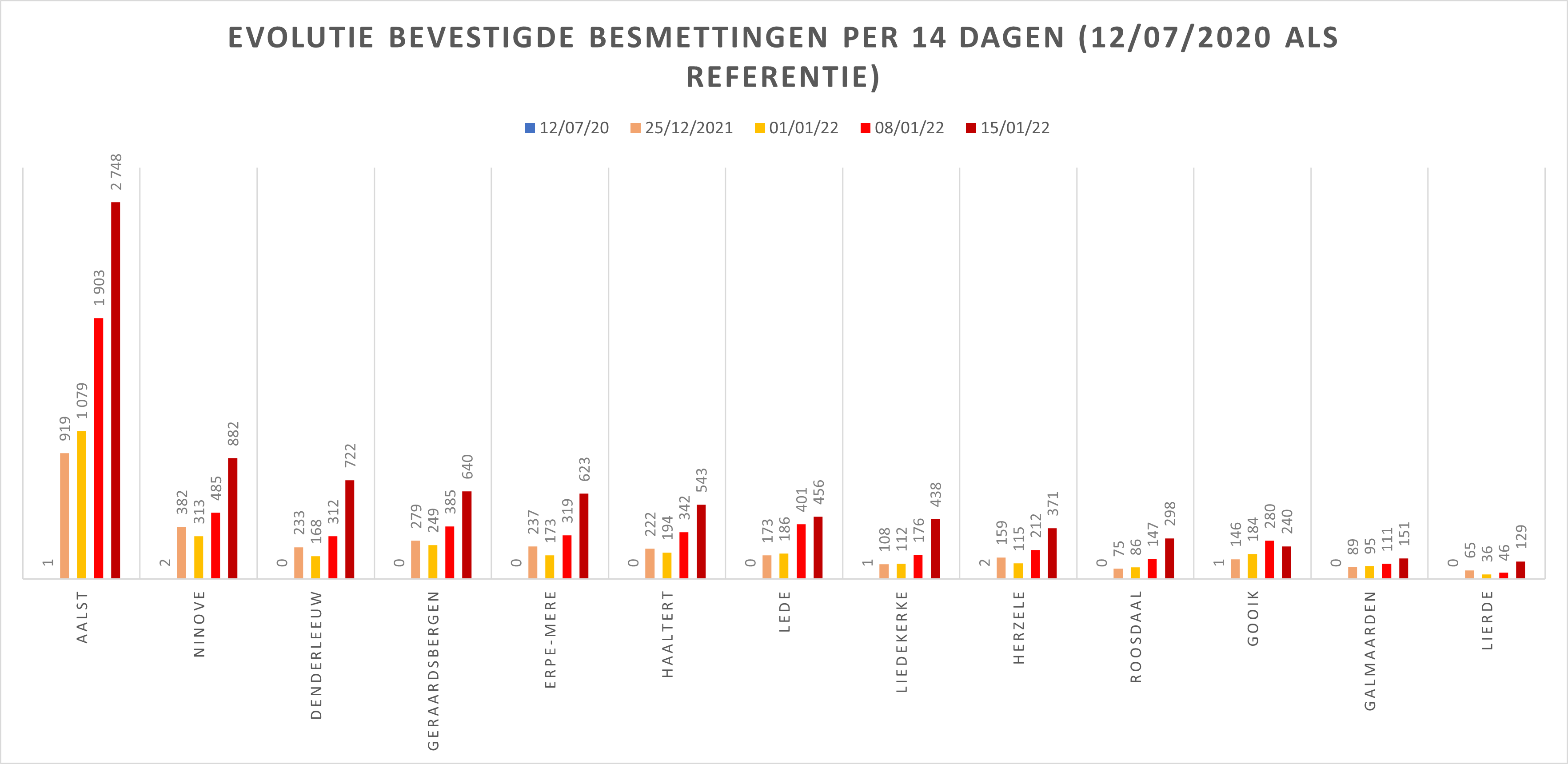 | Gemeente/Stad | 12/07/20 | 18/12/21 | 25/12/21 | 01/01/22 | 08/01/22 | 15/01/22 |