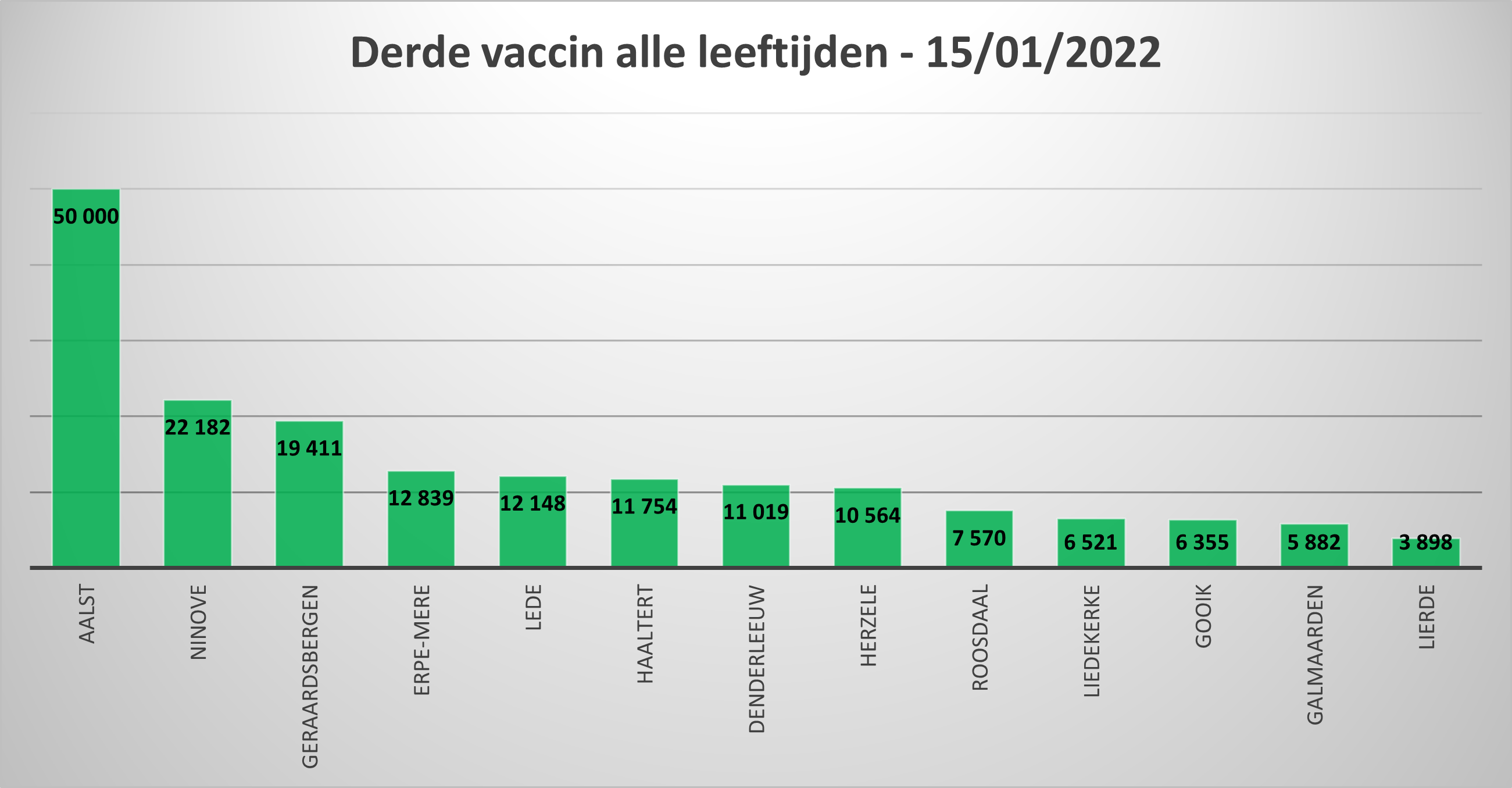 - Momenteel kregen 22.182 (56,34 %) inwoners van alle leeftijden een derde prik.