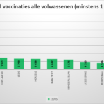 - Tot 15 mei kregen 13.031 van alle +18-jarigen minstens 1 vaccinatieprik. Dat is 41,39 % van die bevolkingsgroep.