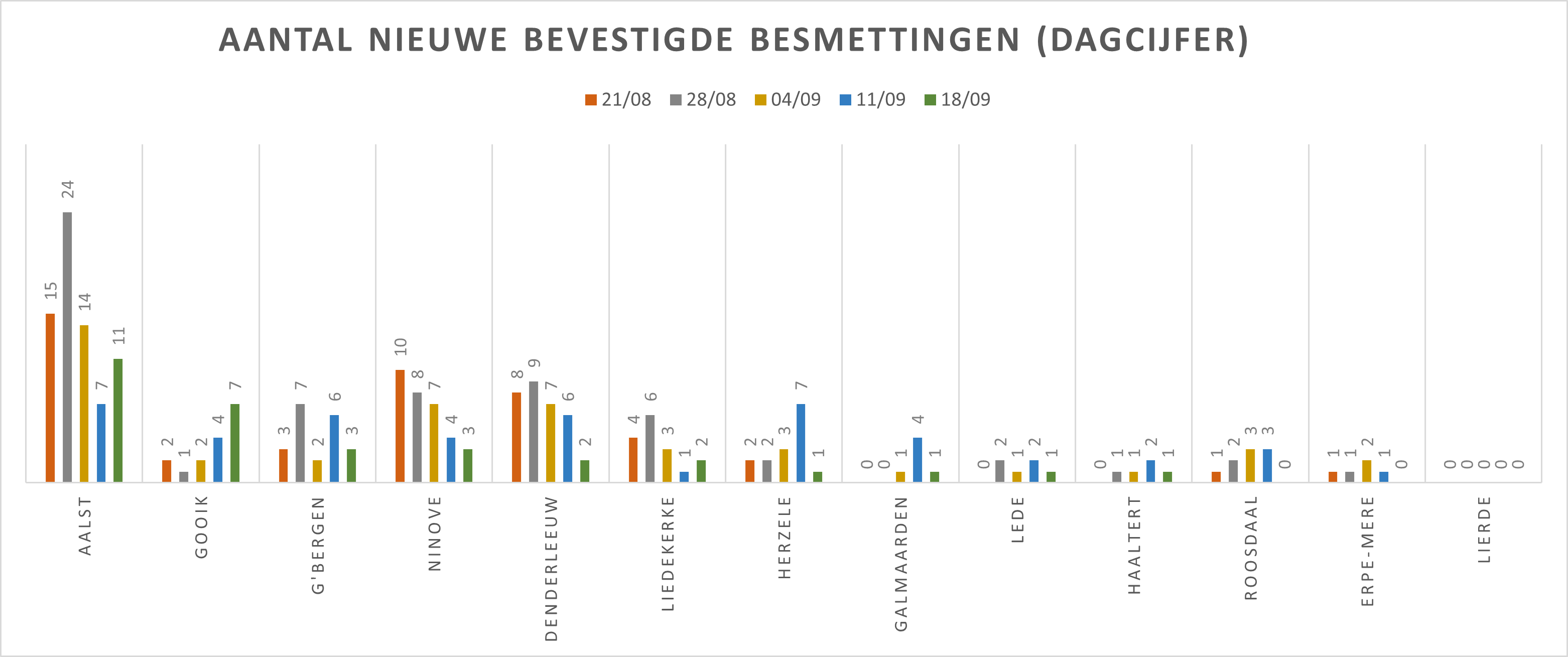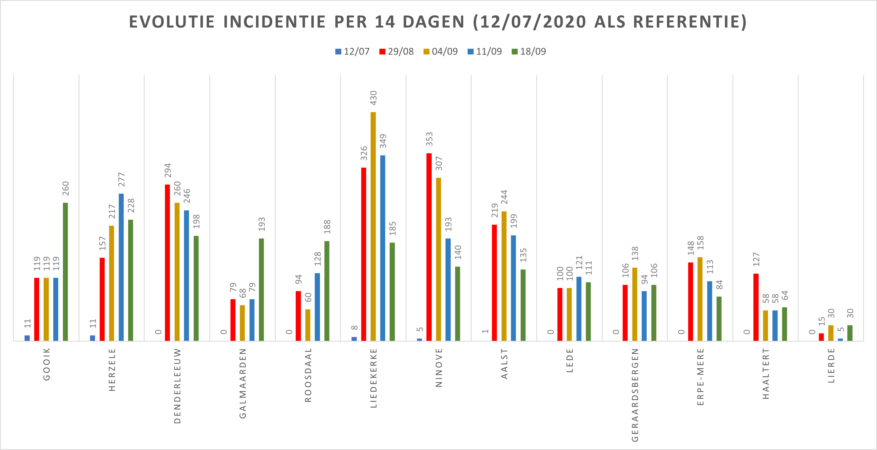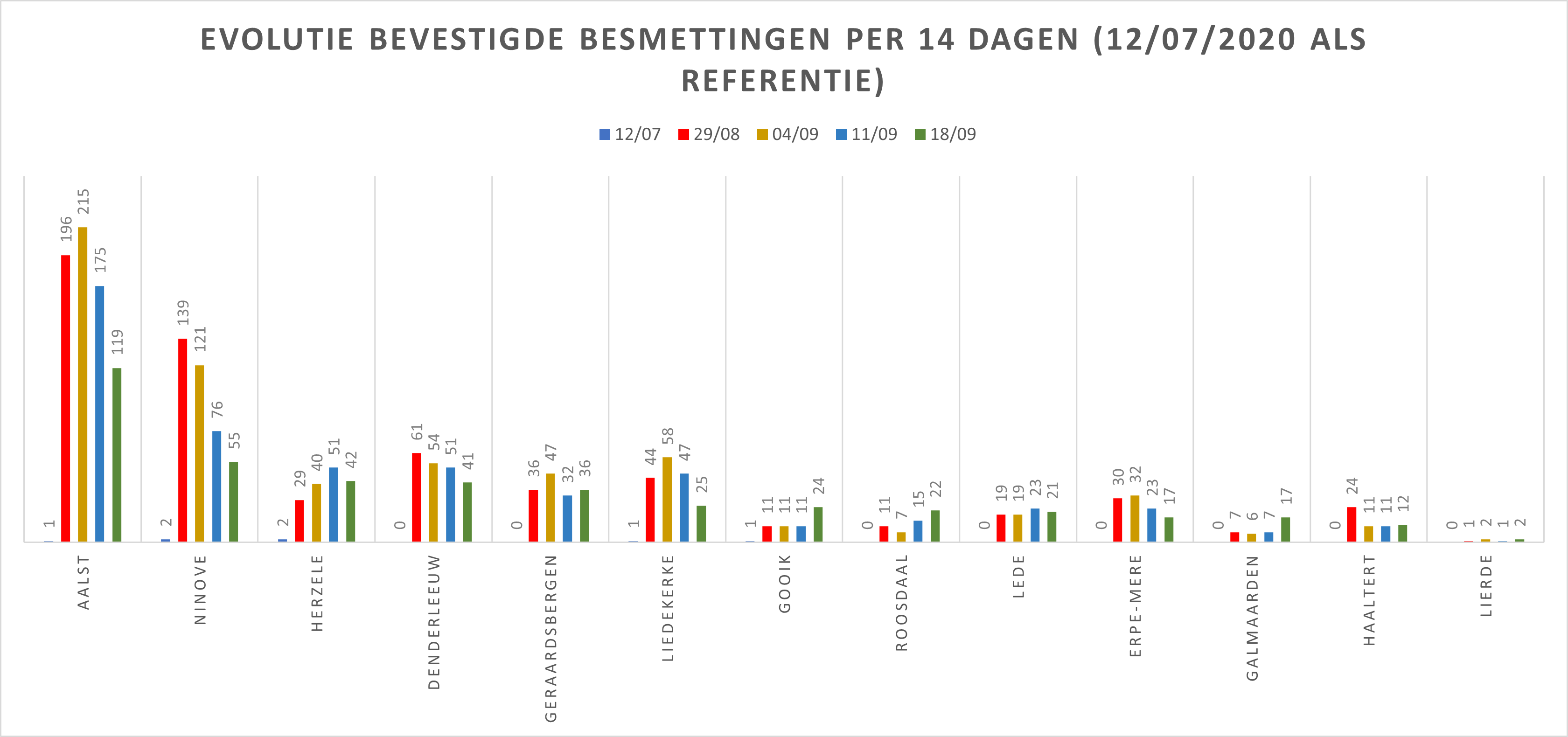 | Gemeente/Stad | 12/07/2020 | 15/08 | 22/08 | 29/08 | 04/09 | 11/09 | 18/09 |