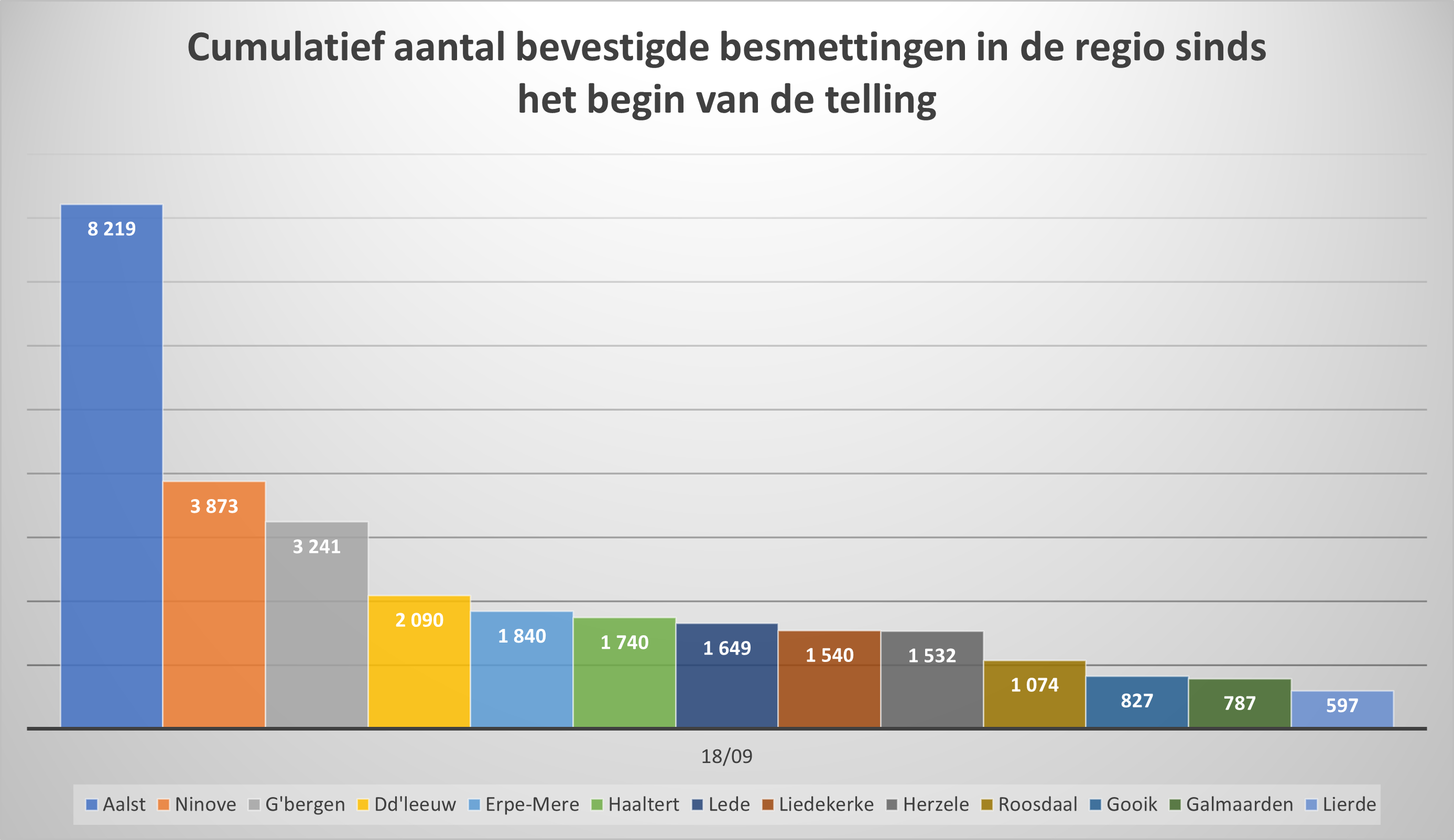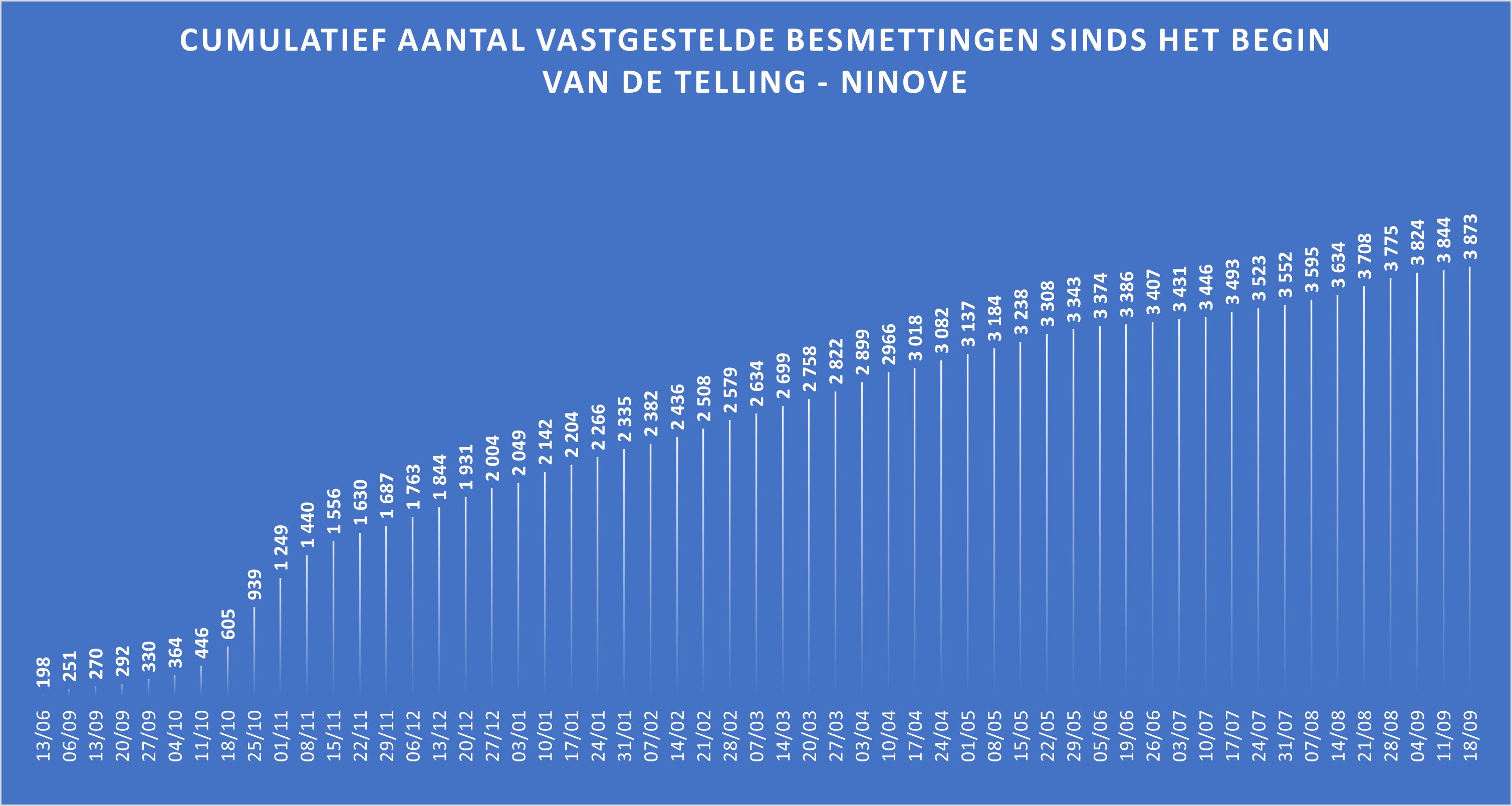 - In totaal zijn hier 3.873 besmettingen genoteerd sinds het begin van de telling.