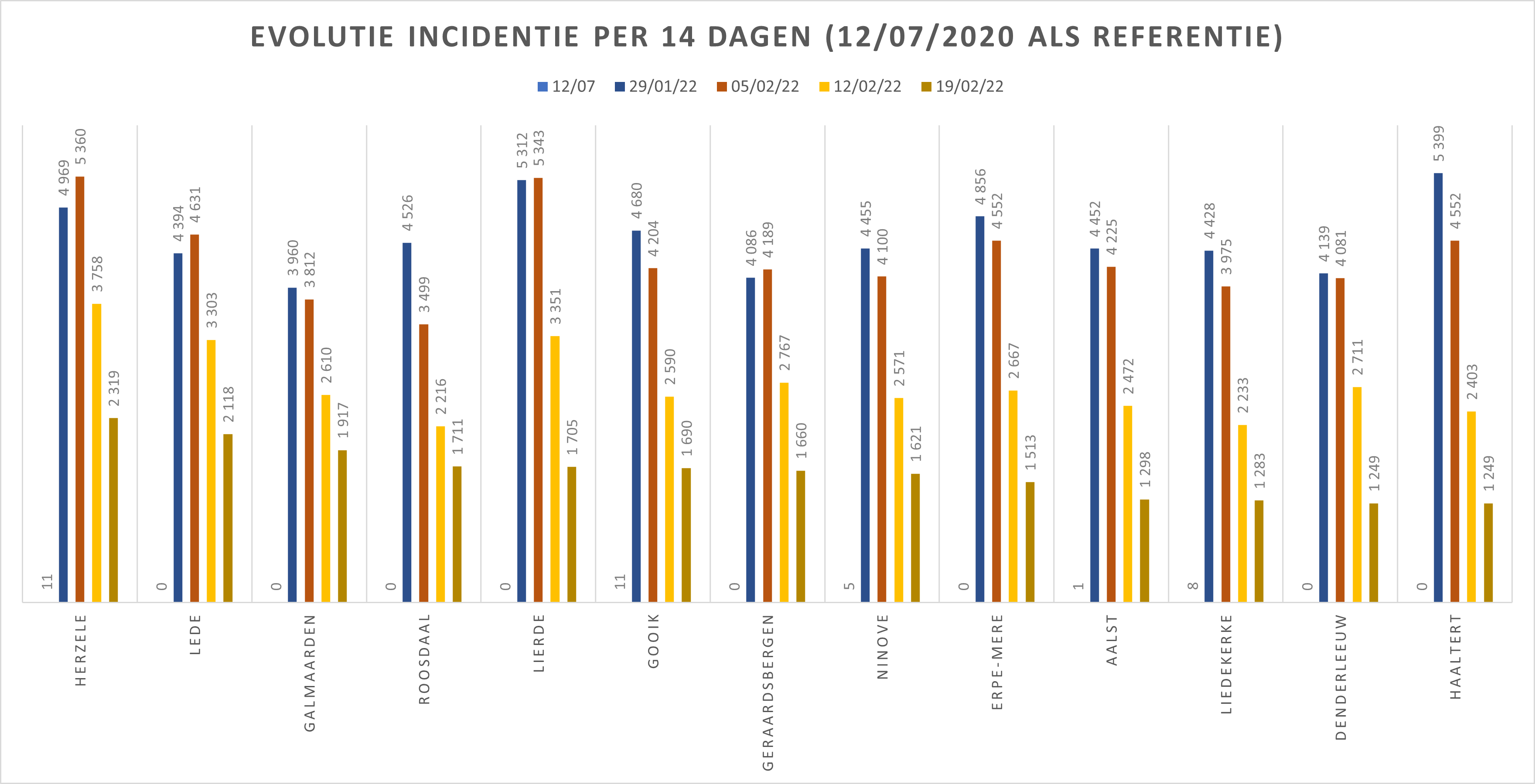 Gemeente/Stad 12/07/2020 22/01/22 29/01/22 05/02/22 12/02/22 19/02/22