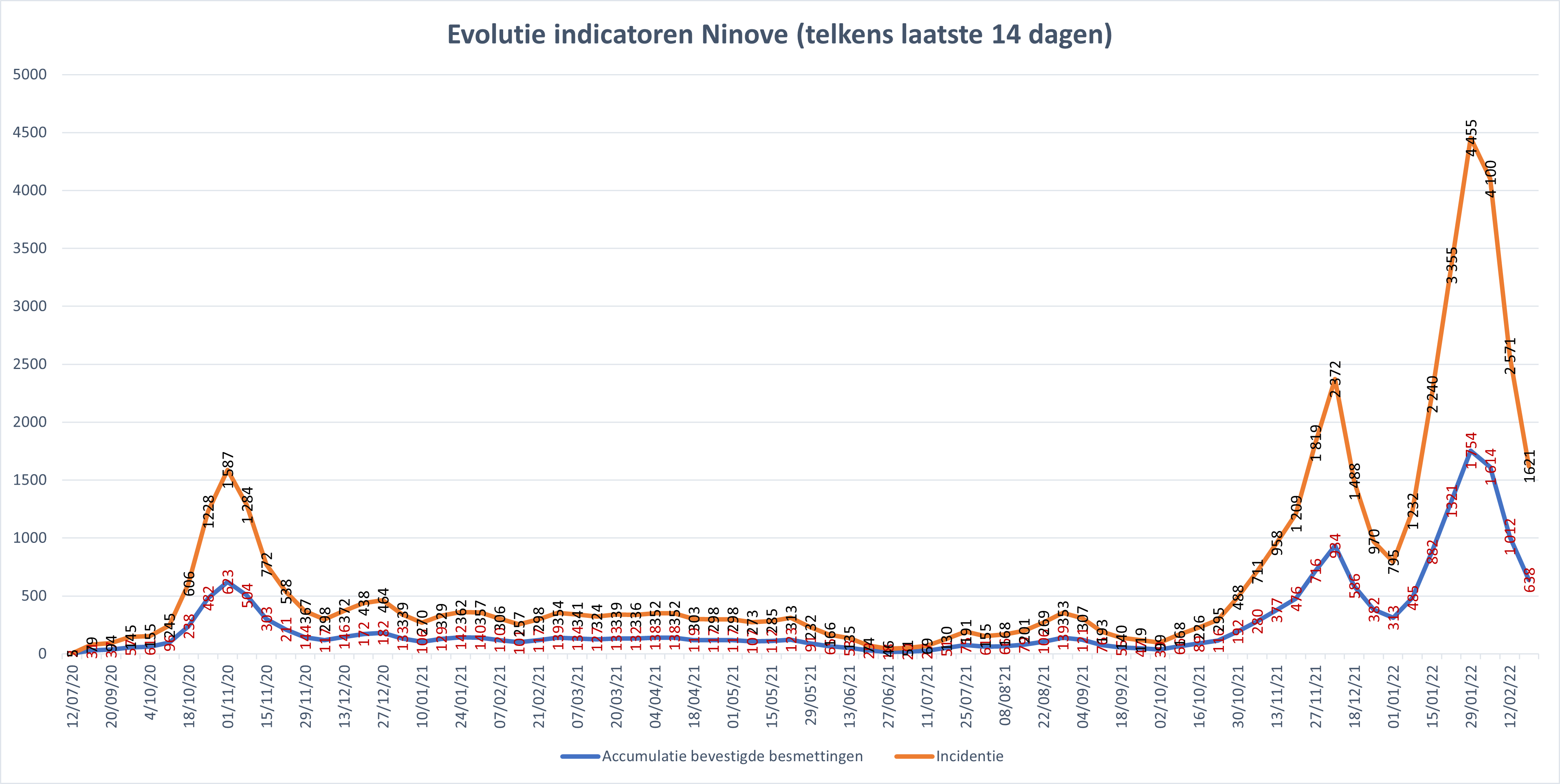 NINOVE – Volgens Sciensano zijn de afgelopen 14 dagen 638 bevestigde besmettingen genoteerd in Ninove. We brengen deze en andere cijfers van de omliggende steden en gemeenten elke week in kaart.