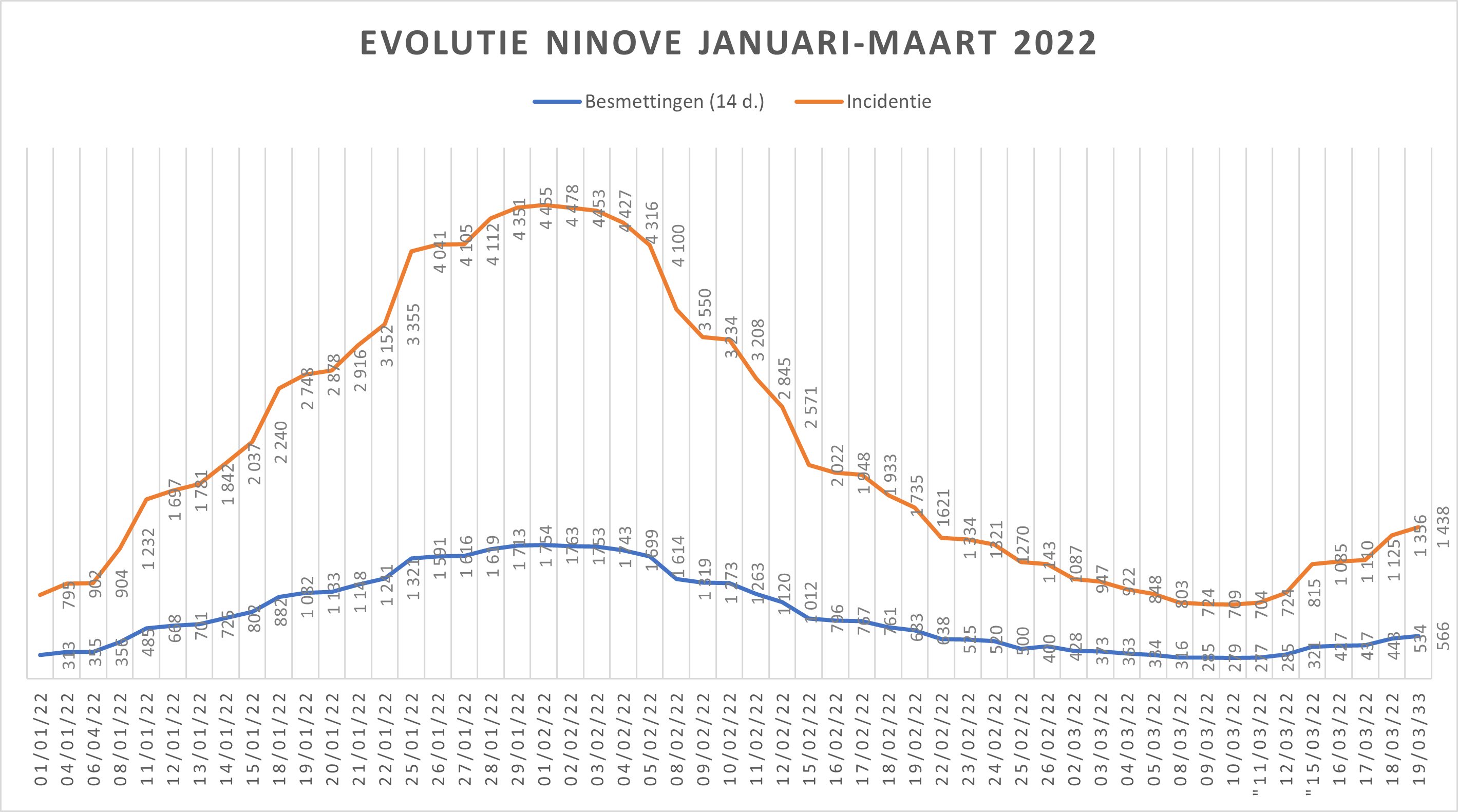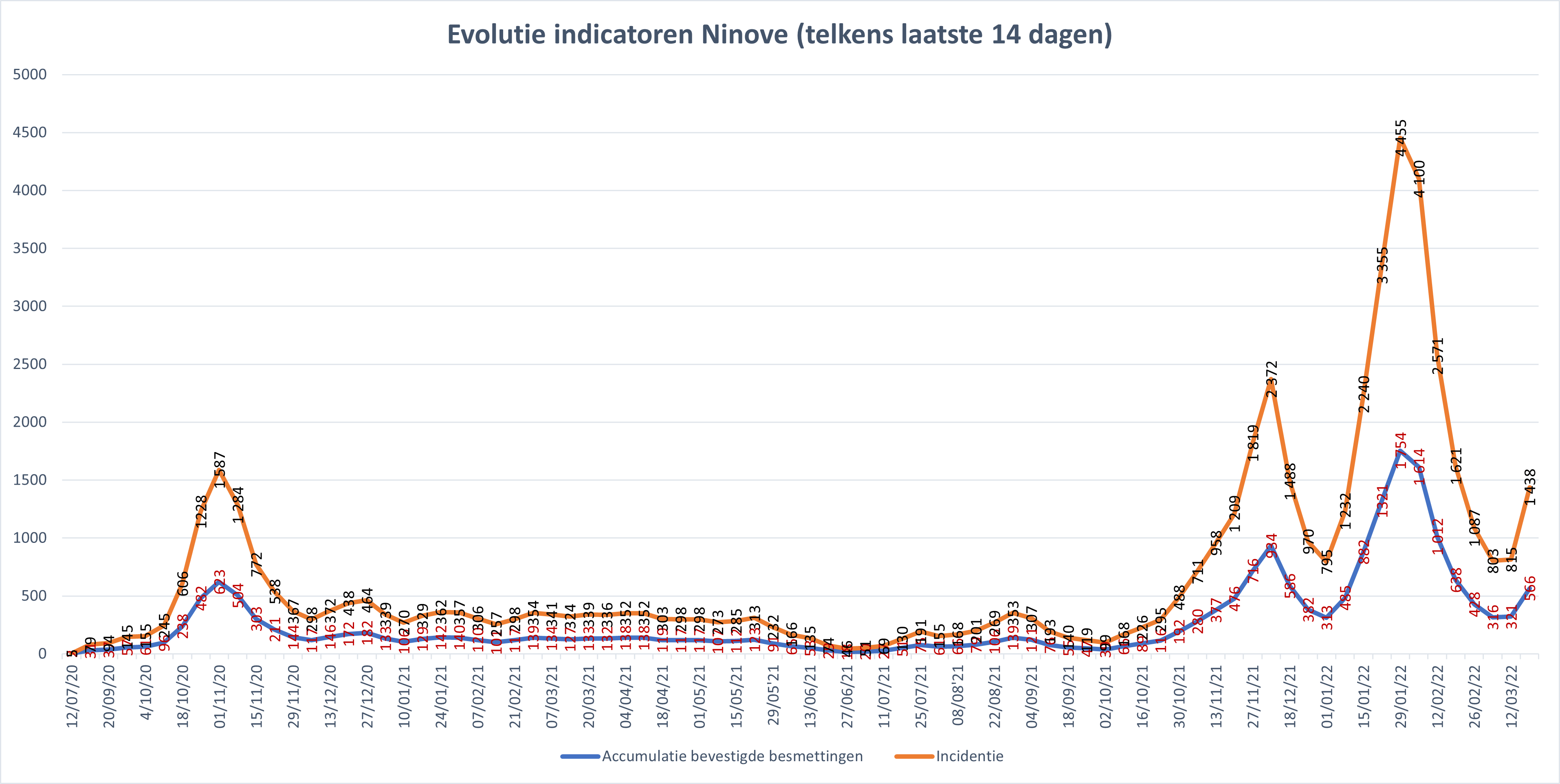 NINOVE – Volgens Sciensano zijn de afgelopen 14 dagen 566 bevestigde besmettingen genoteerd in Ninove. We brengen deze en andere cijfers van de omliggende steden en gemeenten elke week in kaart.