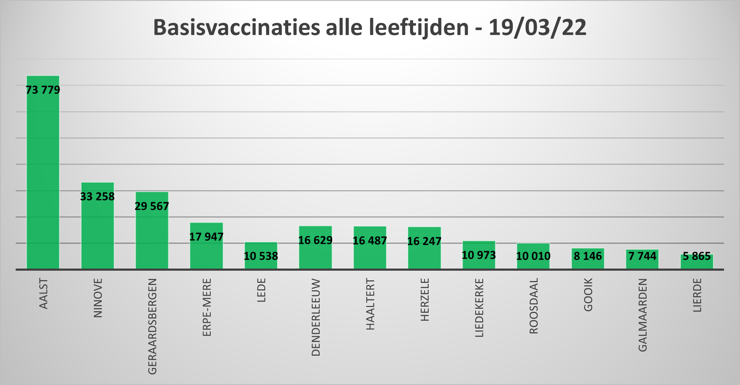 - Tot 12 maart zijn 33.258 (84,48 %) personen van alle leeftijden in Ninove volledig gevaccineerd.