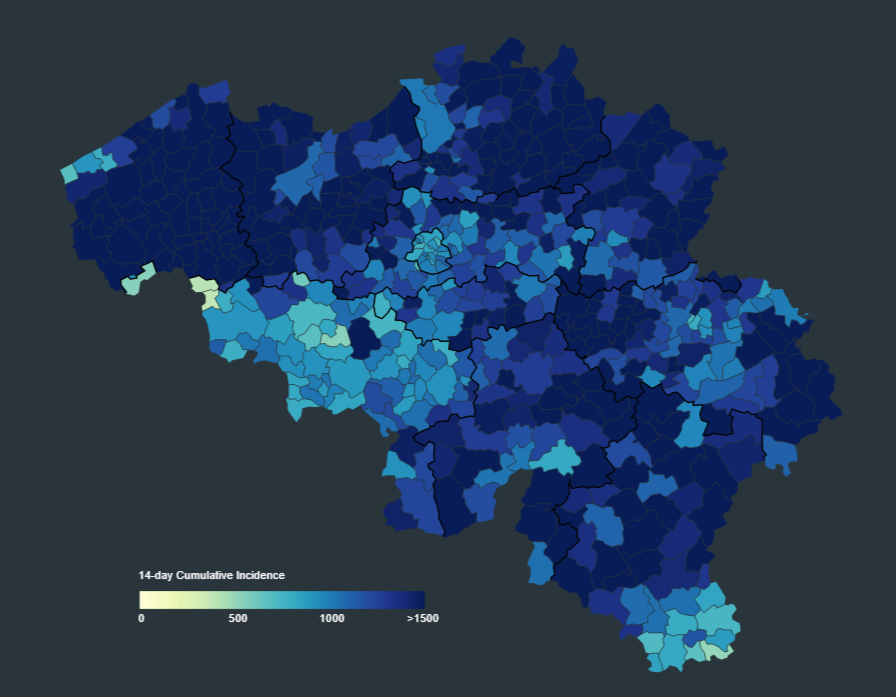 | Aantal bevestigde besmettingen (laatste 14 dagen) | |||||
