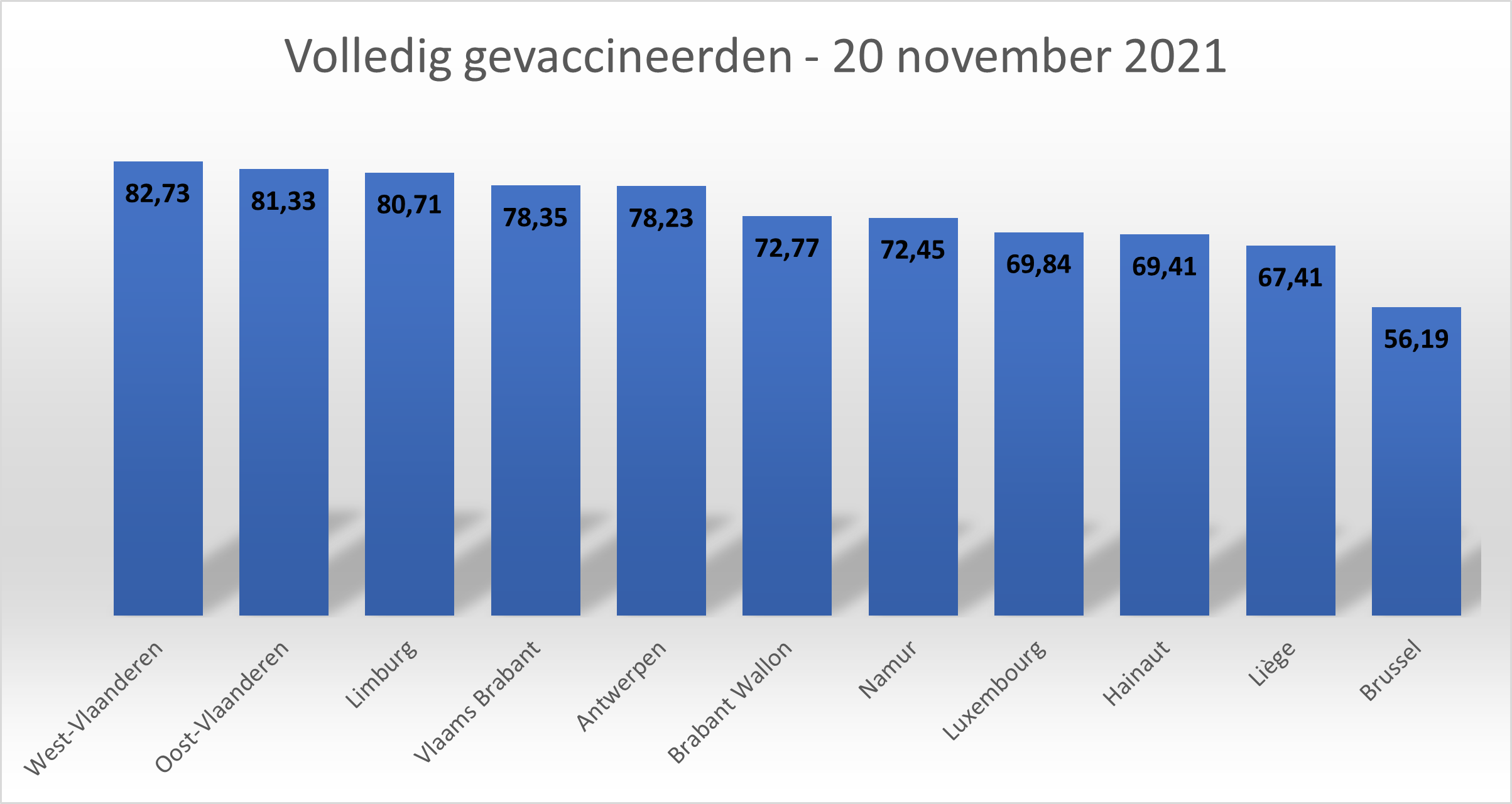 - Tot 20 november zijn 31.585 (80,32 %) personen van alle leeftijden in Ninove volledig gevaccineerd.