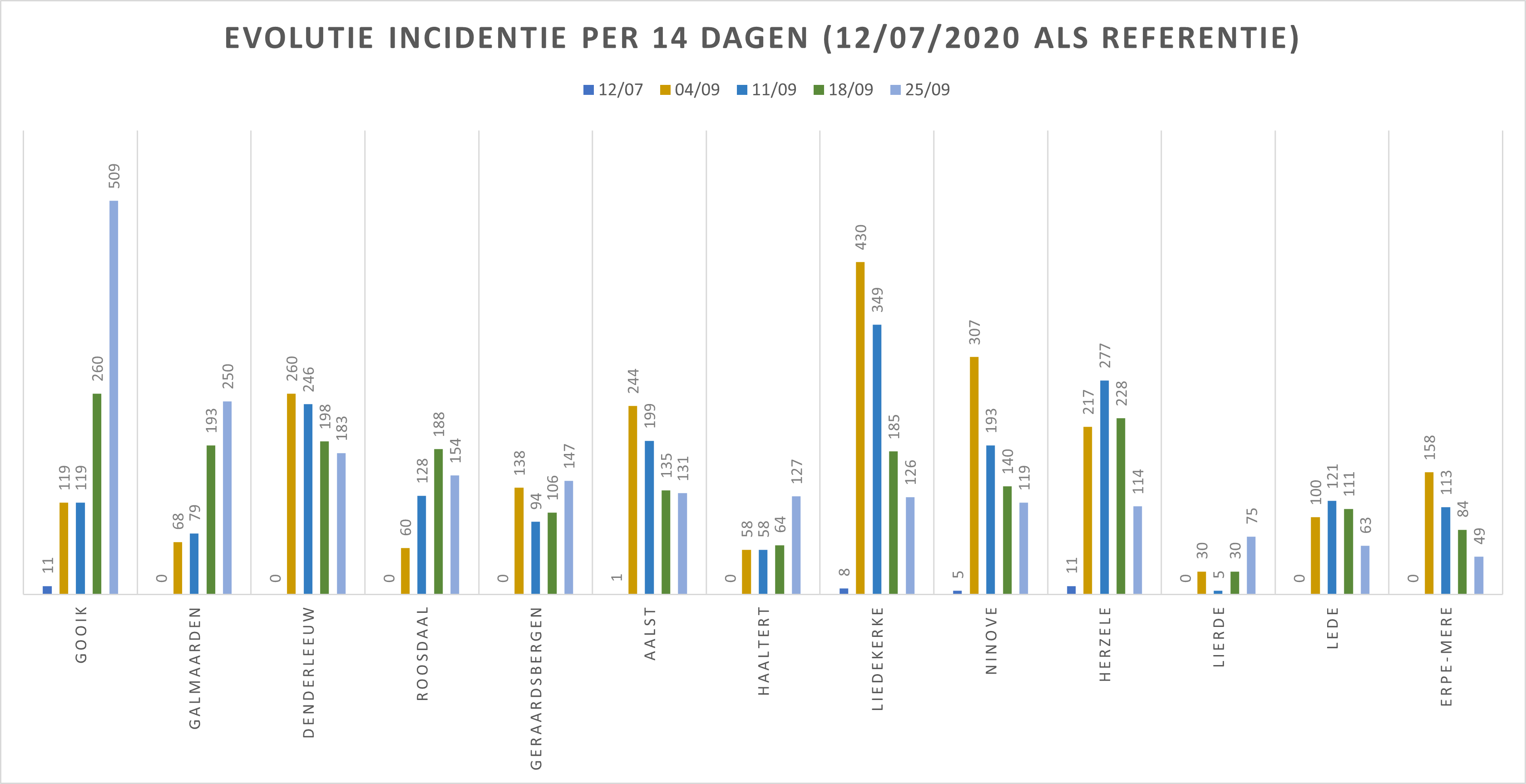 | Gemeente/Stad | 12/07/2020 | 29/08 | 04/09 | 11/09 | 18/09 | 25/09 |