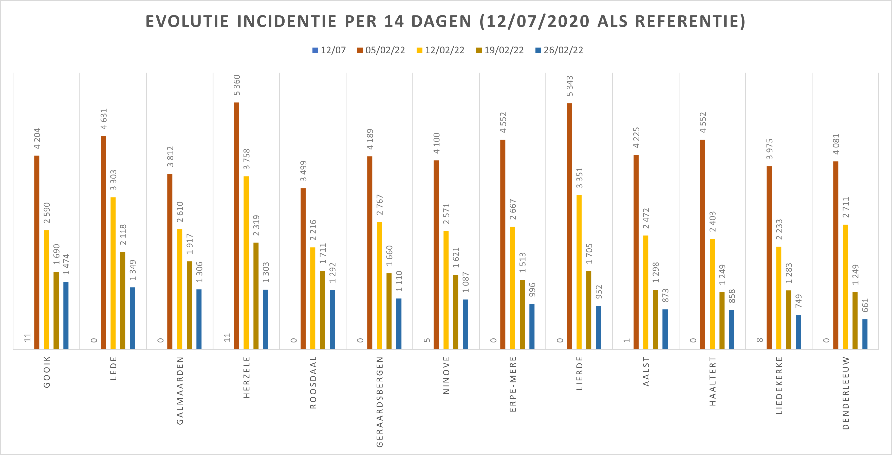 | Gemeente/Stad | 22/01/22 | 29/01/22 | 05/02/22 | 12/02/22 | 19/02/22 | 26/02/22 |