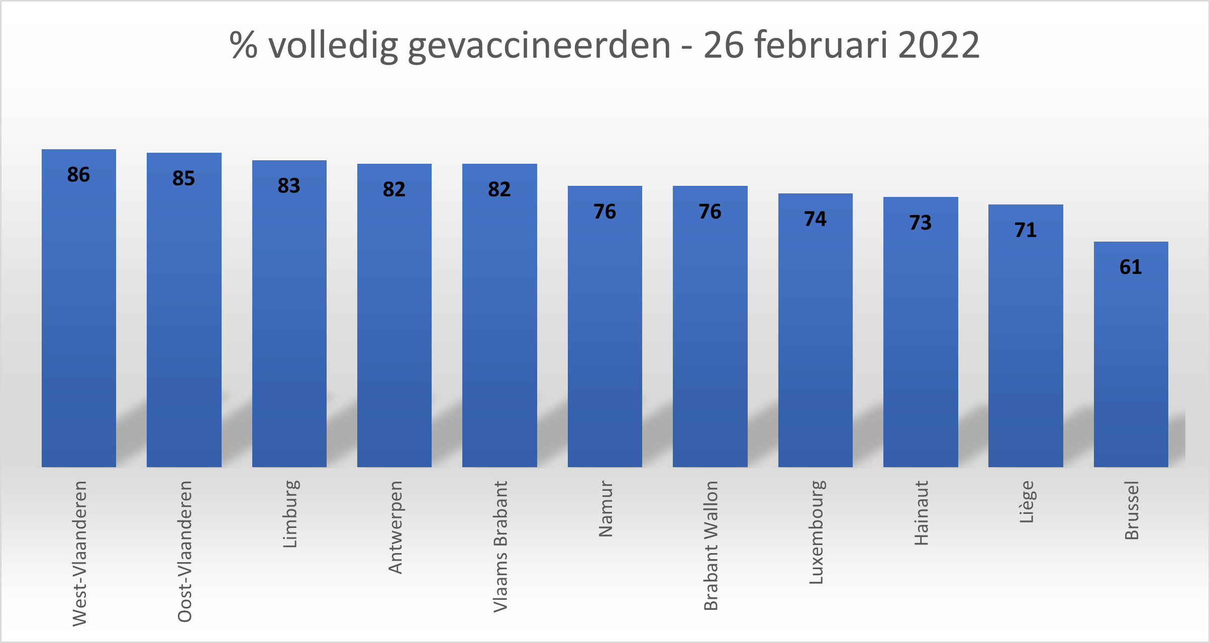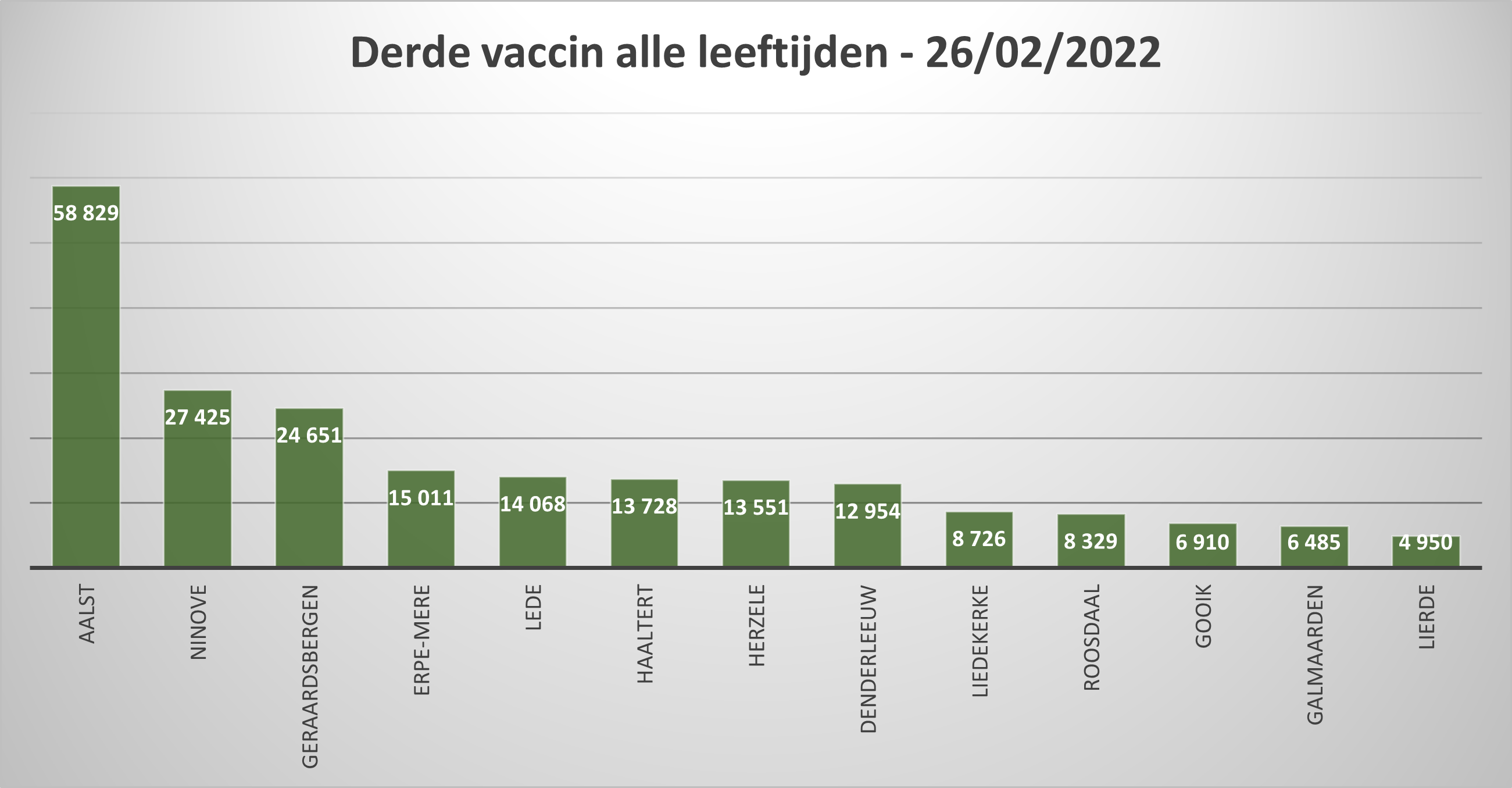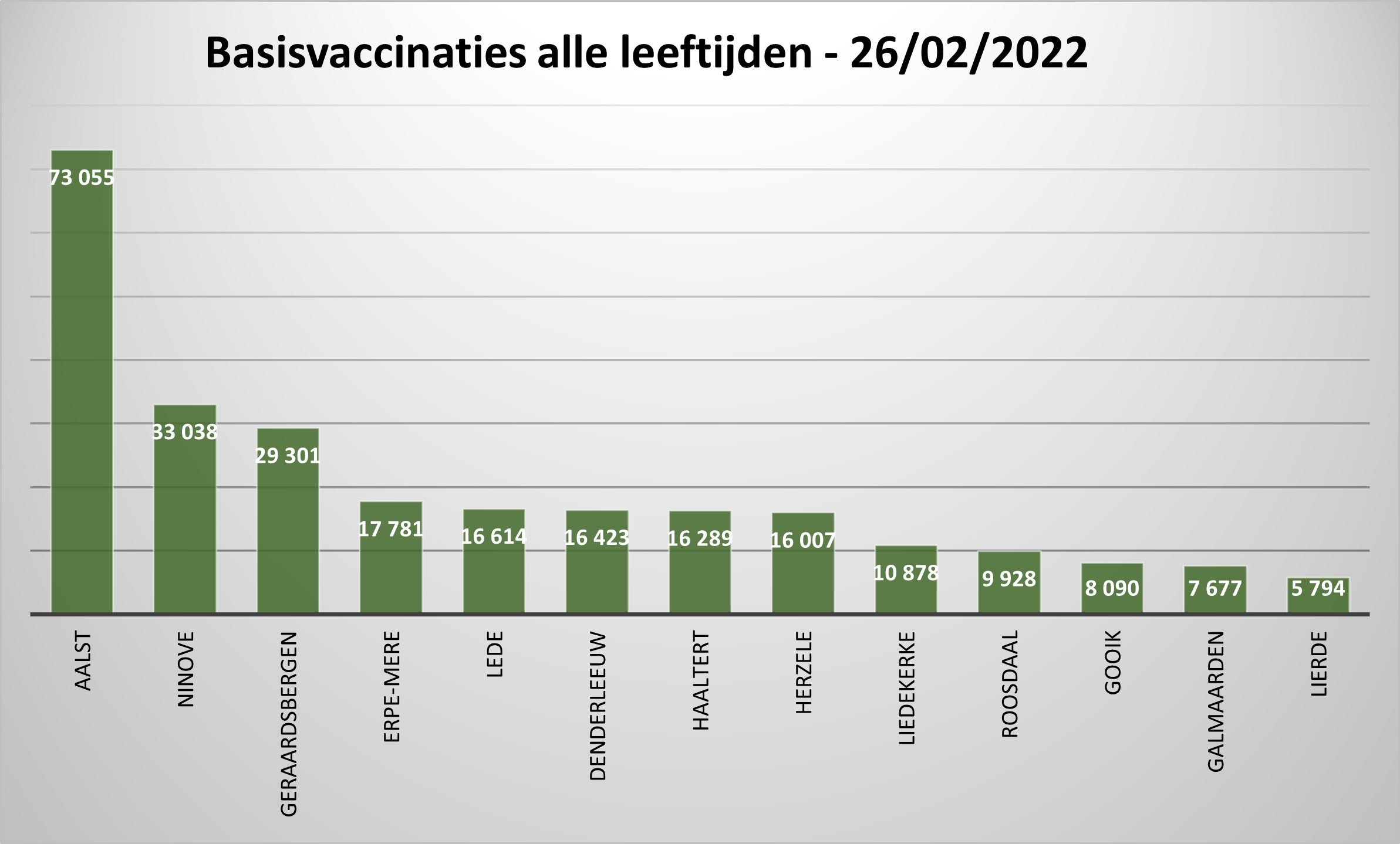 - Tot 26 februari zijn 33.150 (84,20 %) personen van alle leeftijden in Ninove volledig gevaccineerd.