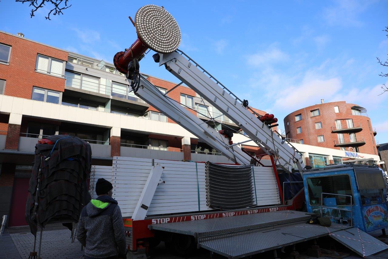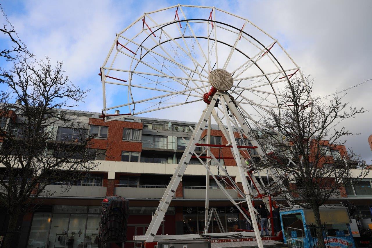 NINOVE – De opbouw van het reuzenrad langsheen de Centrumlaan is woensdagmiddag 8 december gestart.
