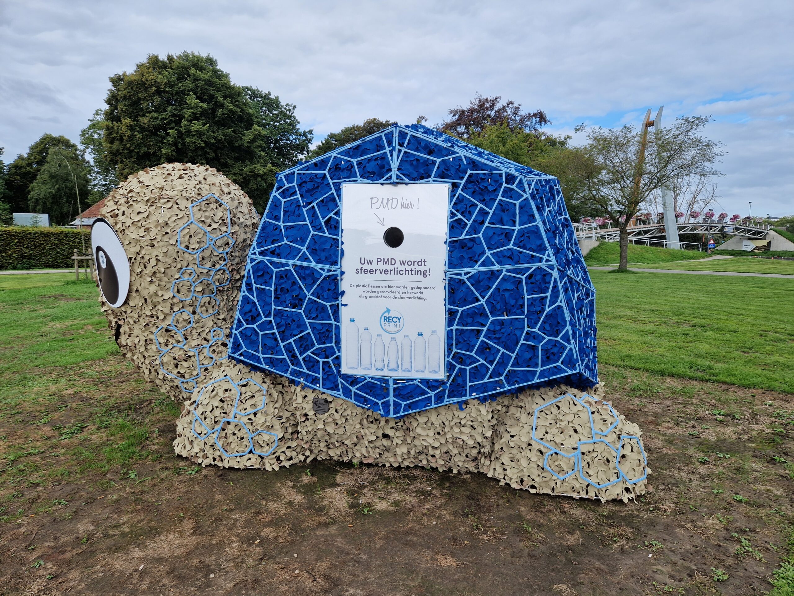 In die schildpad kan je plastic flessen deponeren. Het is een deel van de compensatie, die de stad heeft gekregen van de aangestelde firma voor de gebrekkige werking van en de problemen met de kerstverlichting van vorig jaar.