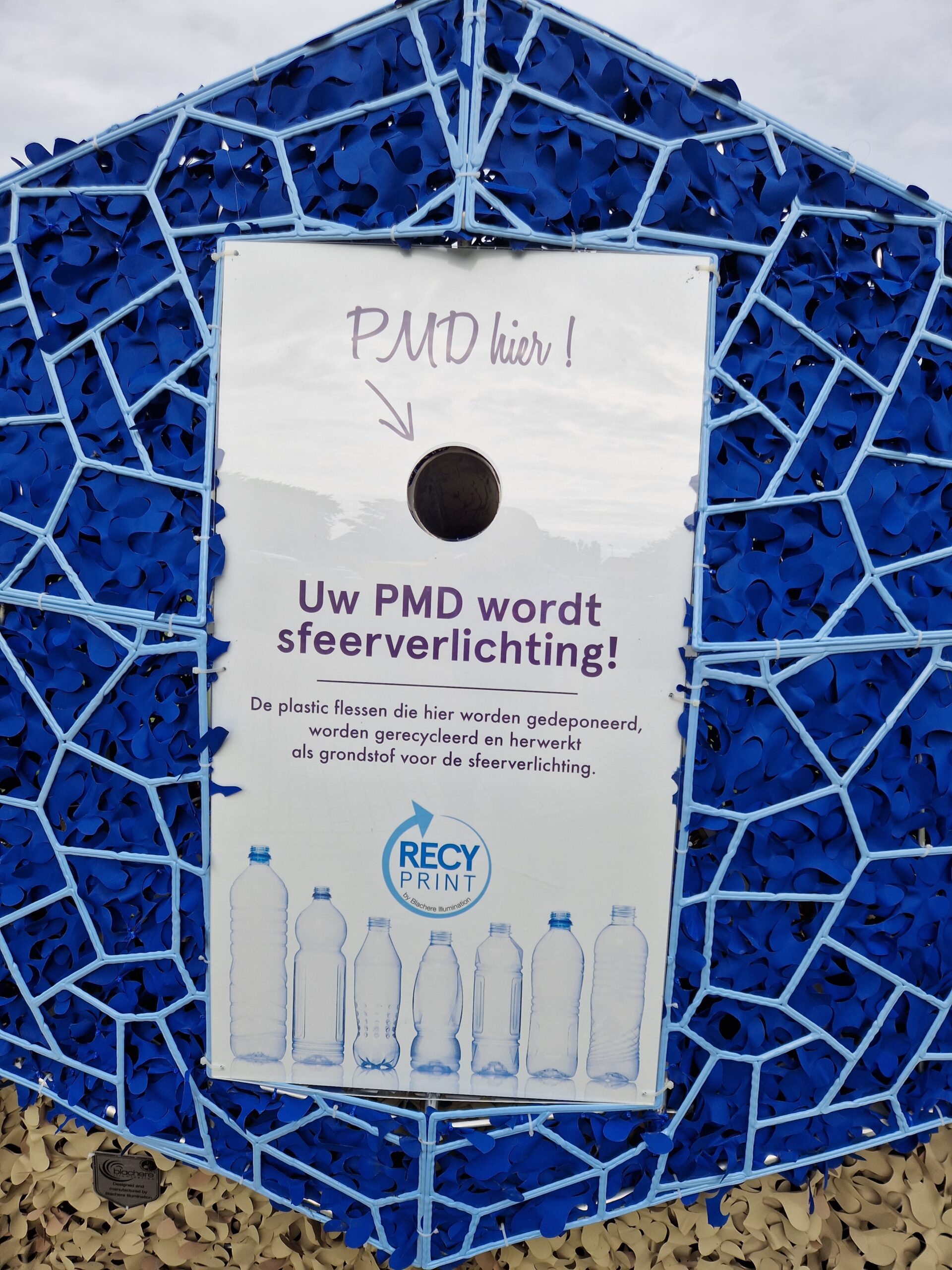 Zij plaatste deze om later van de grondstof van het plasticafval nieuwe sfeerlichting te maken.