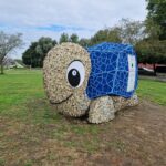 NINOVE – Als een compensatie voor de gebrekkige kerstverlichting staat sinds enkele dagen op het grasplein aan het monument van dokter Hemerijckx een reuzenschildpad opgesteld.