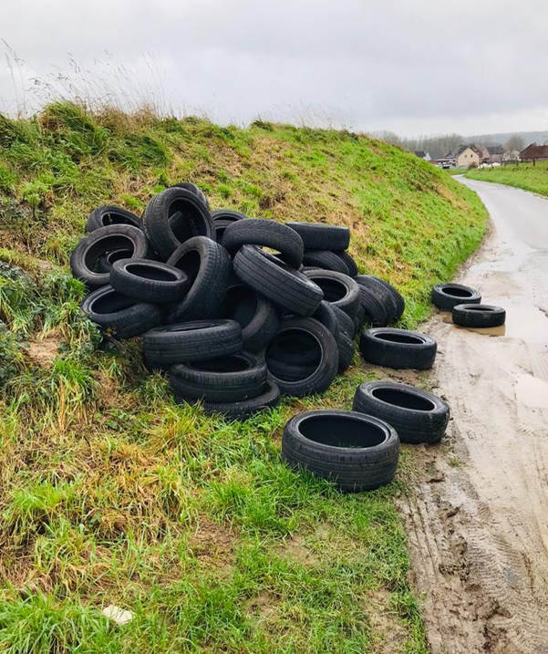 De passant meldde dit sluikstort aan de stadsdiensten. De mensen van ‘Ninove Nette Stad’ zullen instaan voor de opruiming van die bandendump.