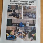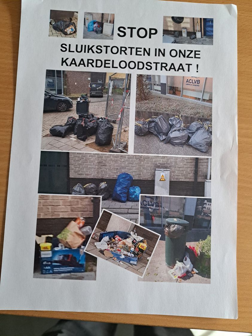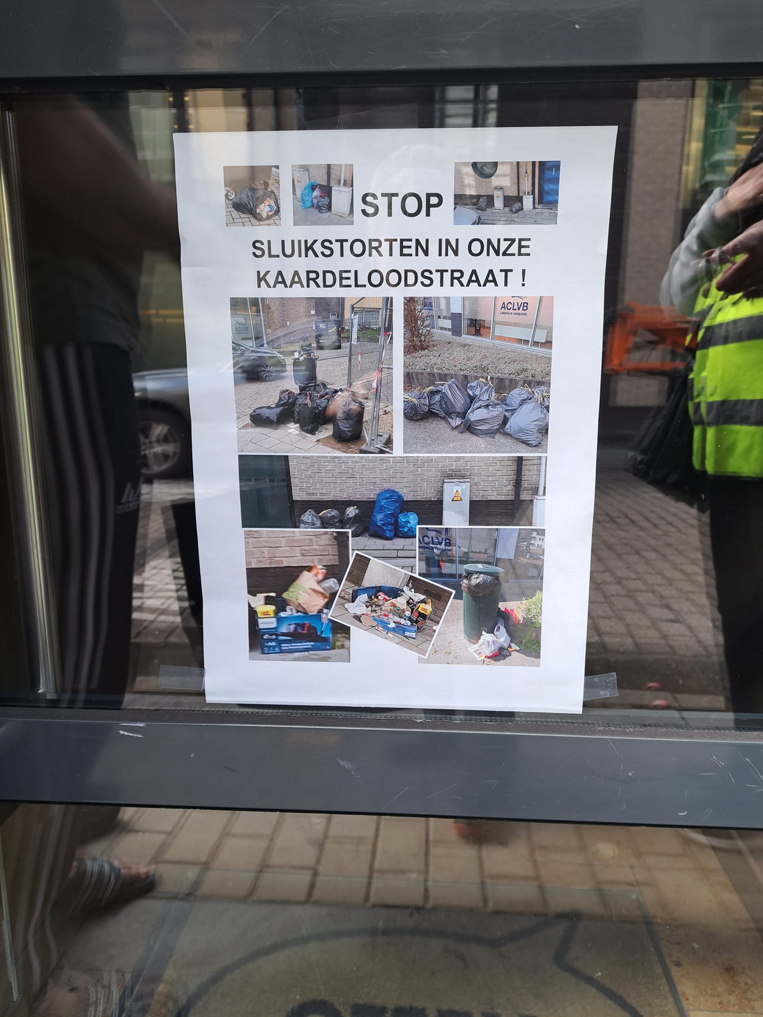 “We belden aan bij buurtbewoners en zelfstandigen in de Kaardeloodstraat, legden hen onze actie uit en vroegen hen om een pamflet te willen voorhangen. We ontvingen alleen maar positieve reacties, ook van toevallige passanten. Bijna altijd kregen we een lawine van klachten over ons heen in verband met die sluikstorten. Het werd ons heel snel duidelijk, dat hier een serieuze samenlevingsproblematiek bestaat. Het zit diep bij de buurtbewoners maar dat wisten we al door de vele klachten die we hierover al ontvingen.”