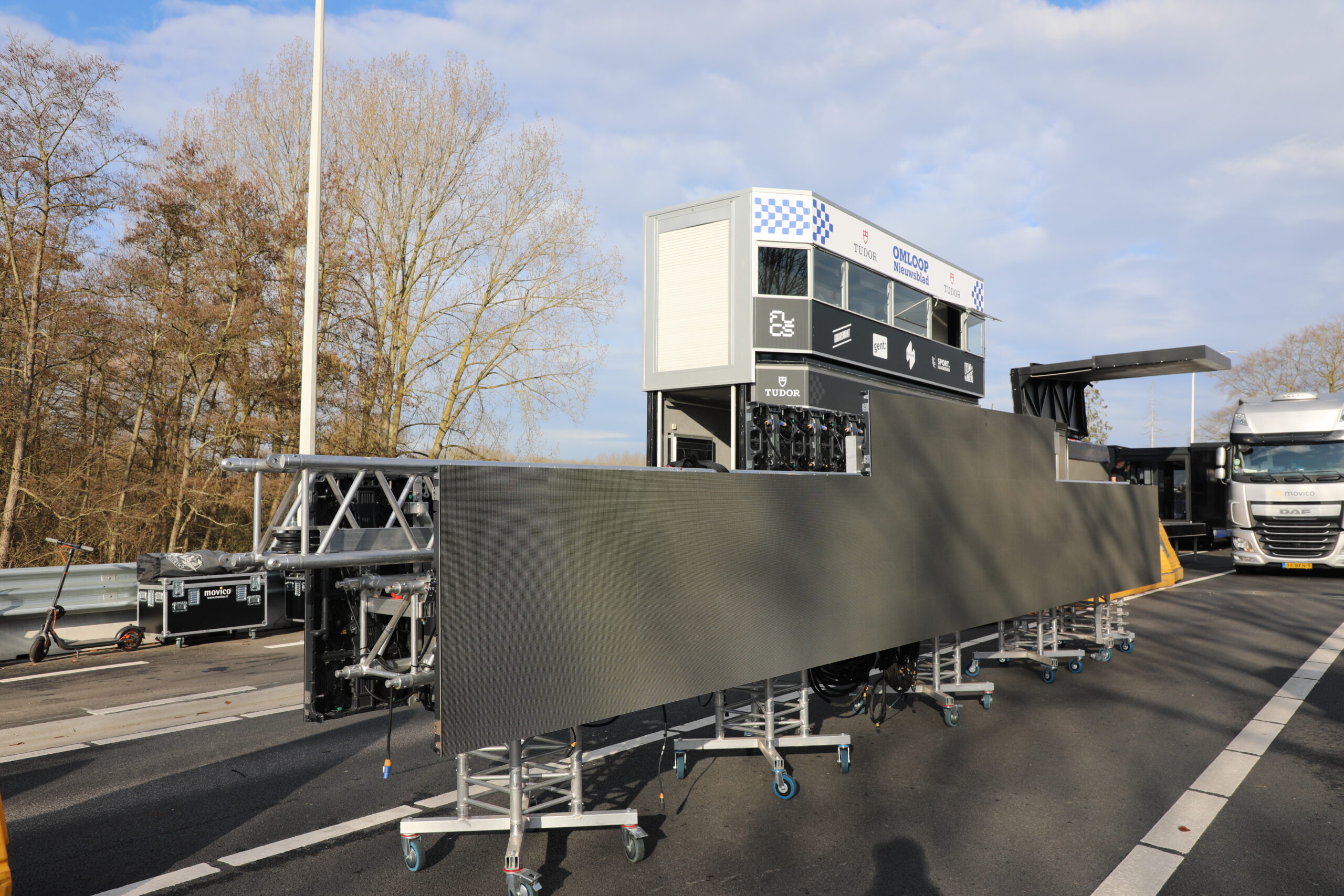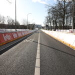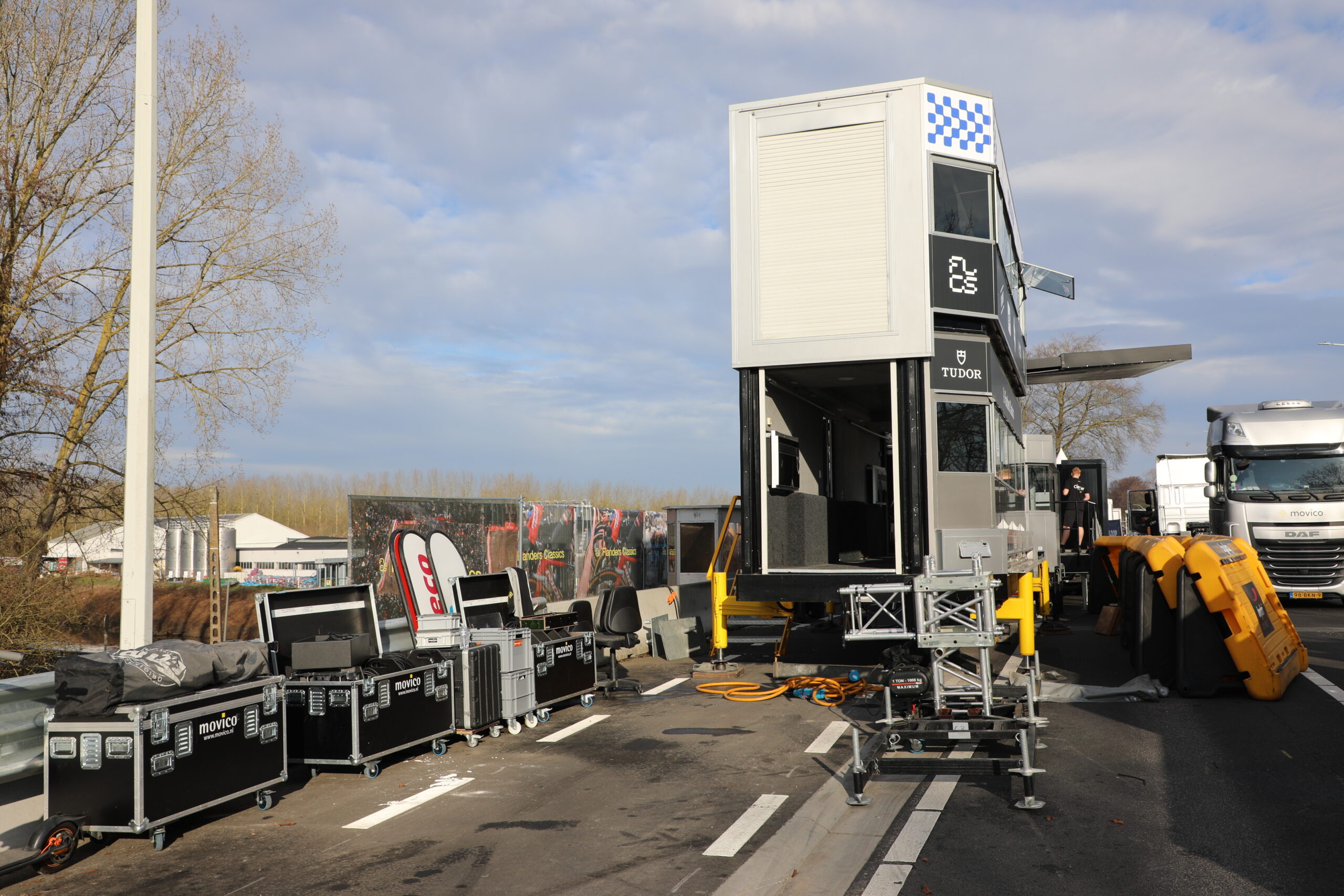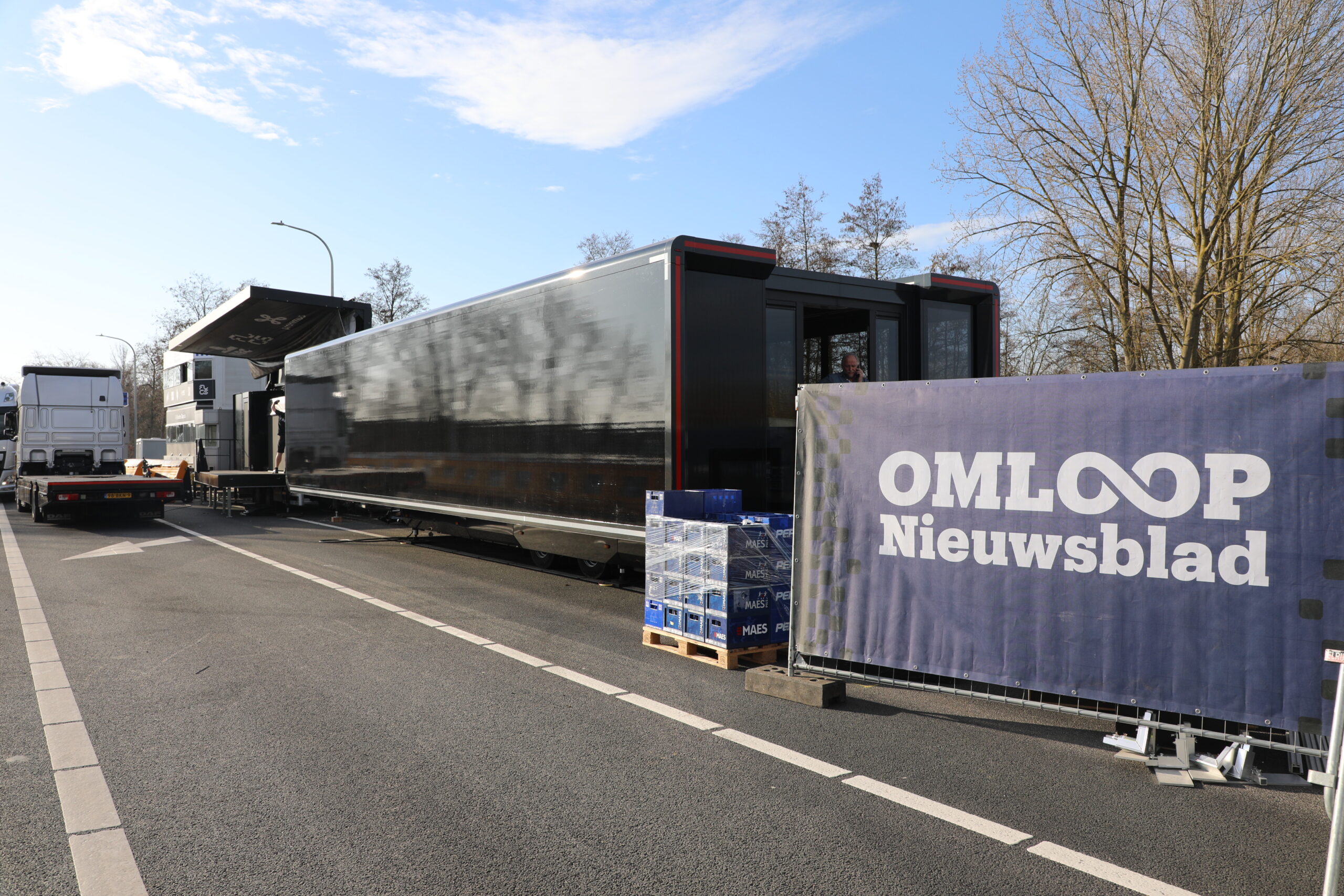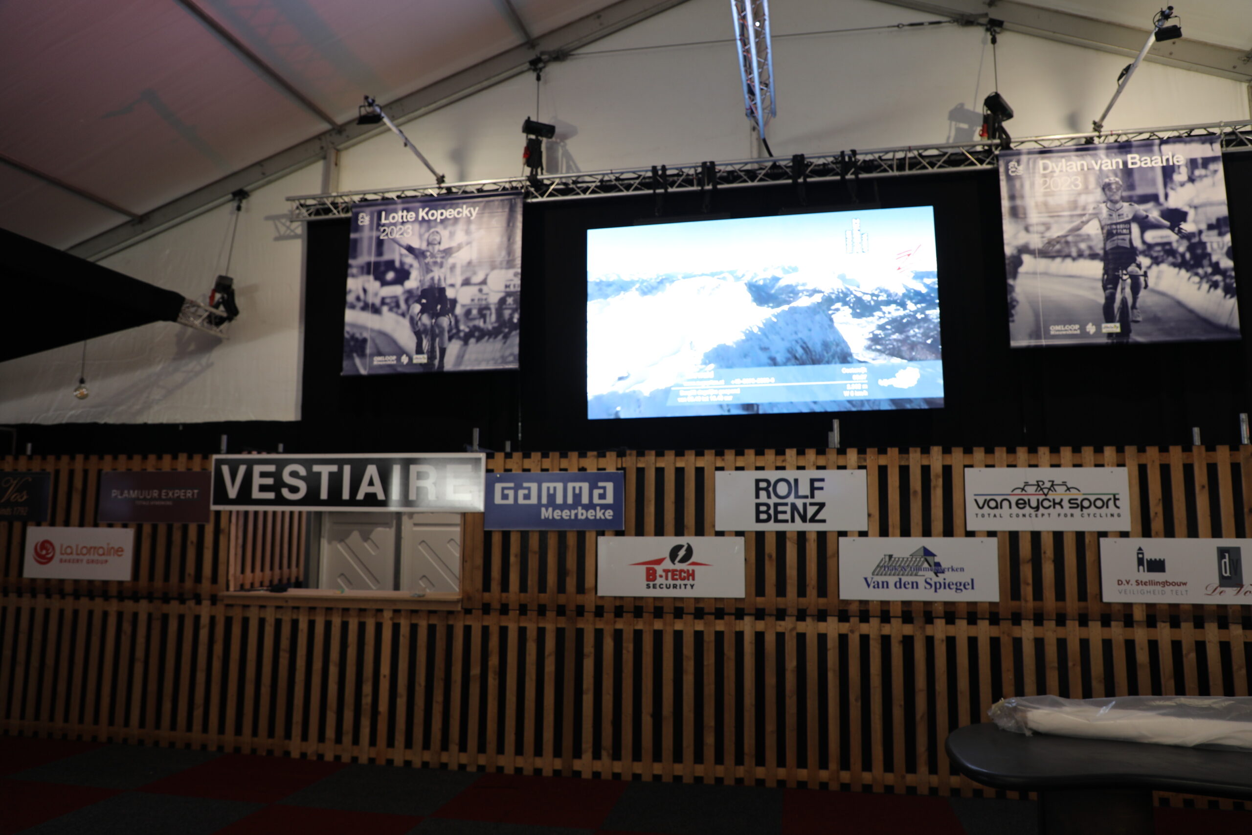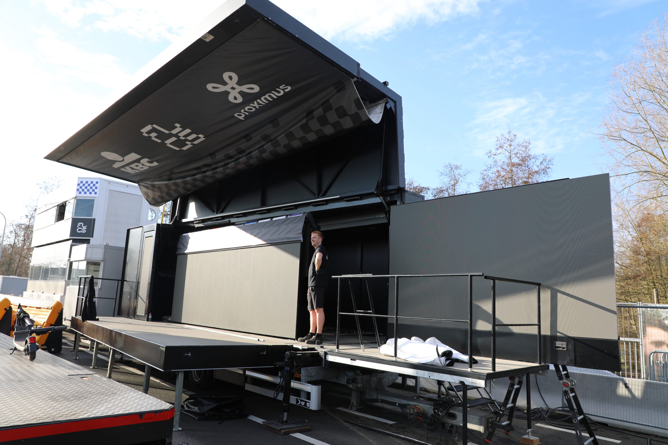 De dranghekken en de gele barrières en bumpers zijn geplaatst, de aankomstboog staat stevig, de lijn is gespoten en de VRT heeft een mediadorp opgetrokken in de laatste rechte lijn.